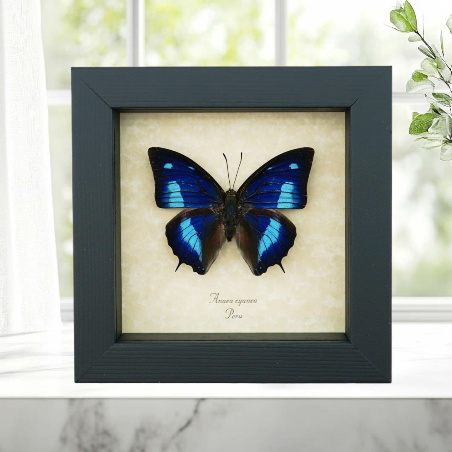 Anaea cyanea Metallic Blue Butterfly Framed Taxidermy Display