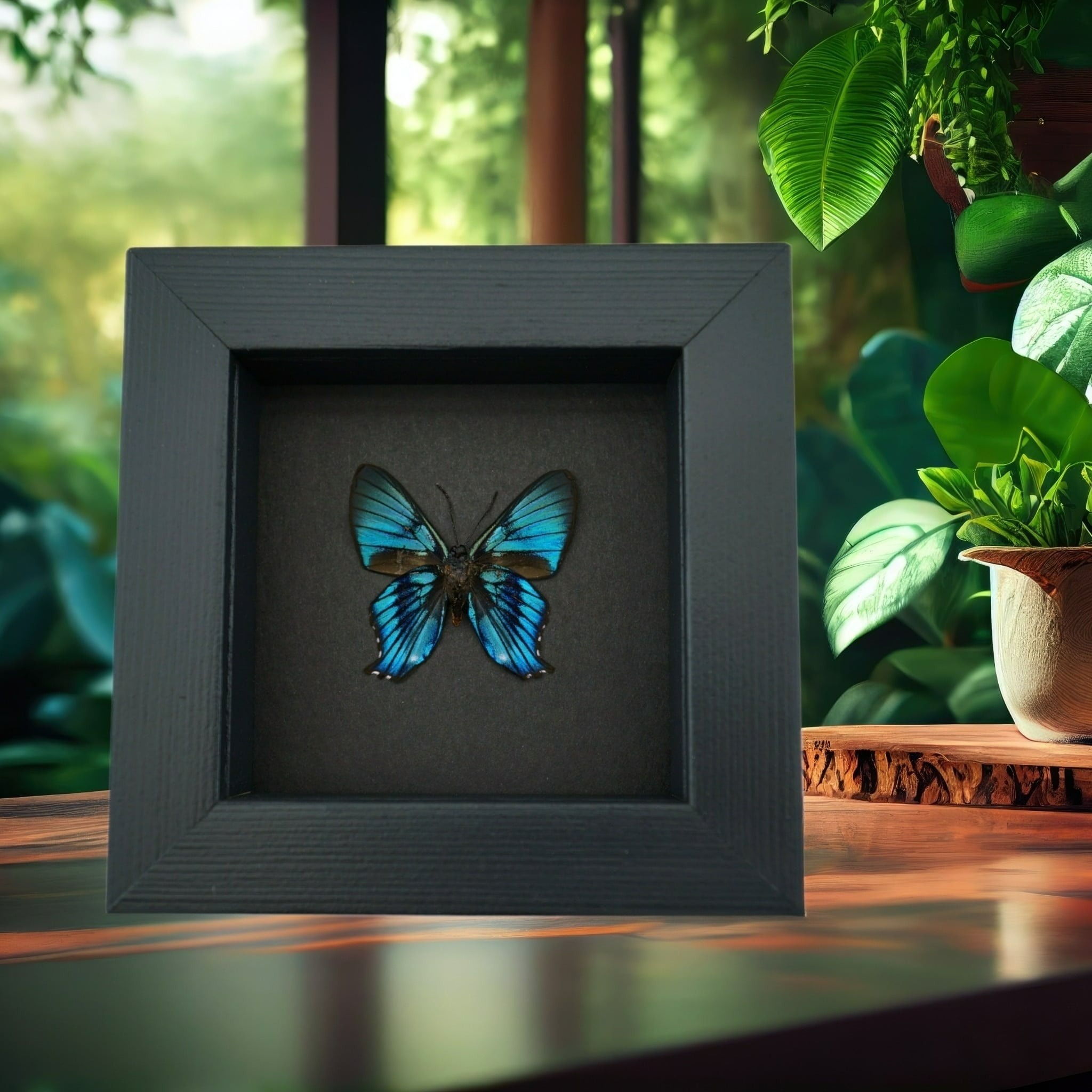 Ancyluris inca miranda Metallic Blue Framed Butterfly Moonlight Display