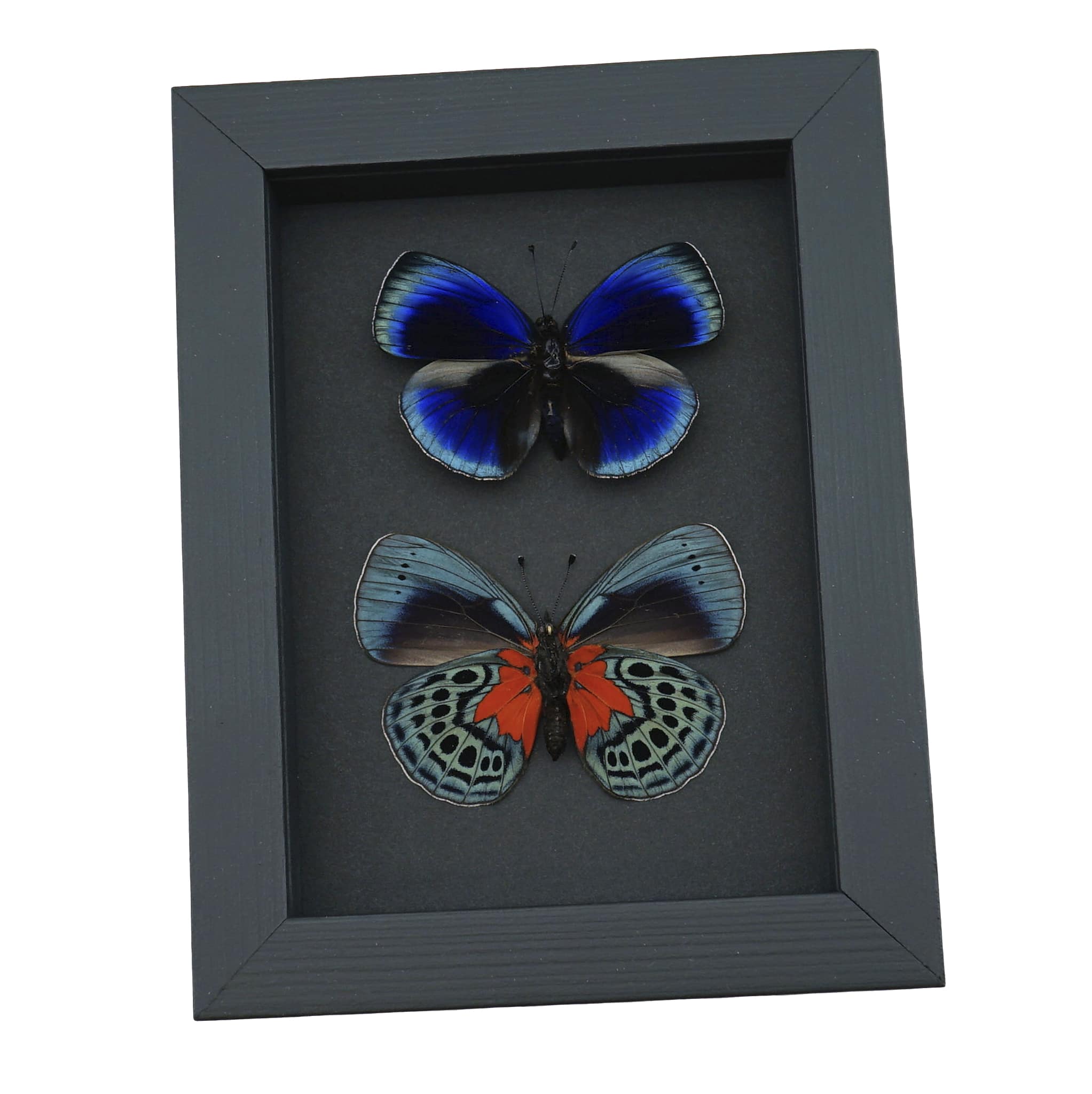Description: Beautiful Blue and red butterfly set mounted front and verso to show both sides of these beautiful butterflies!