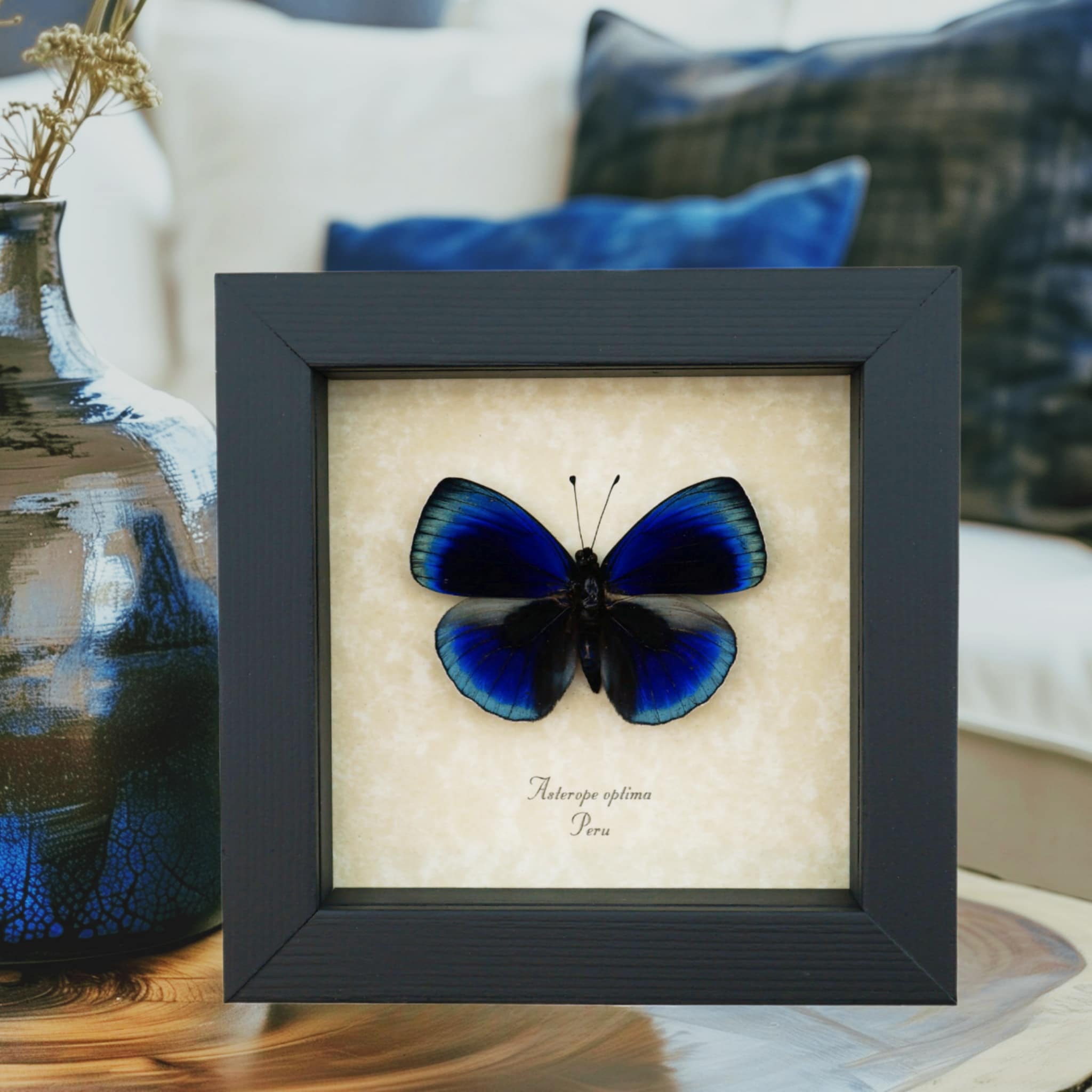 Asterope optima Electric Blue Butterfly Framed Taxidermy Display