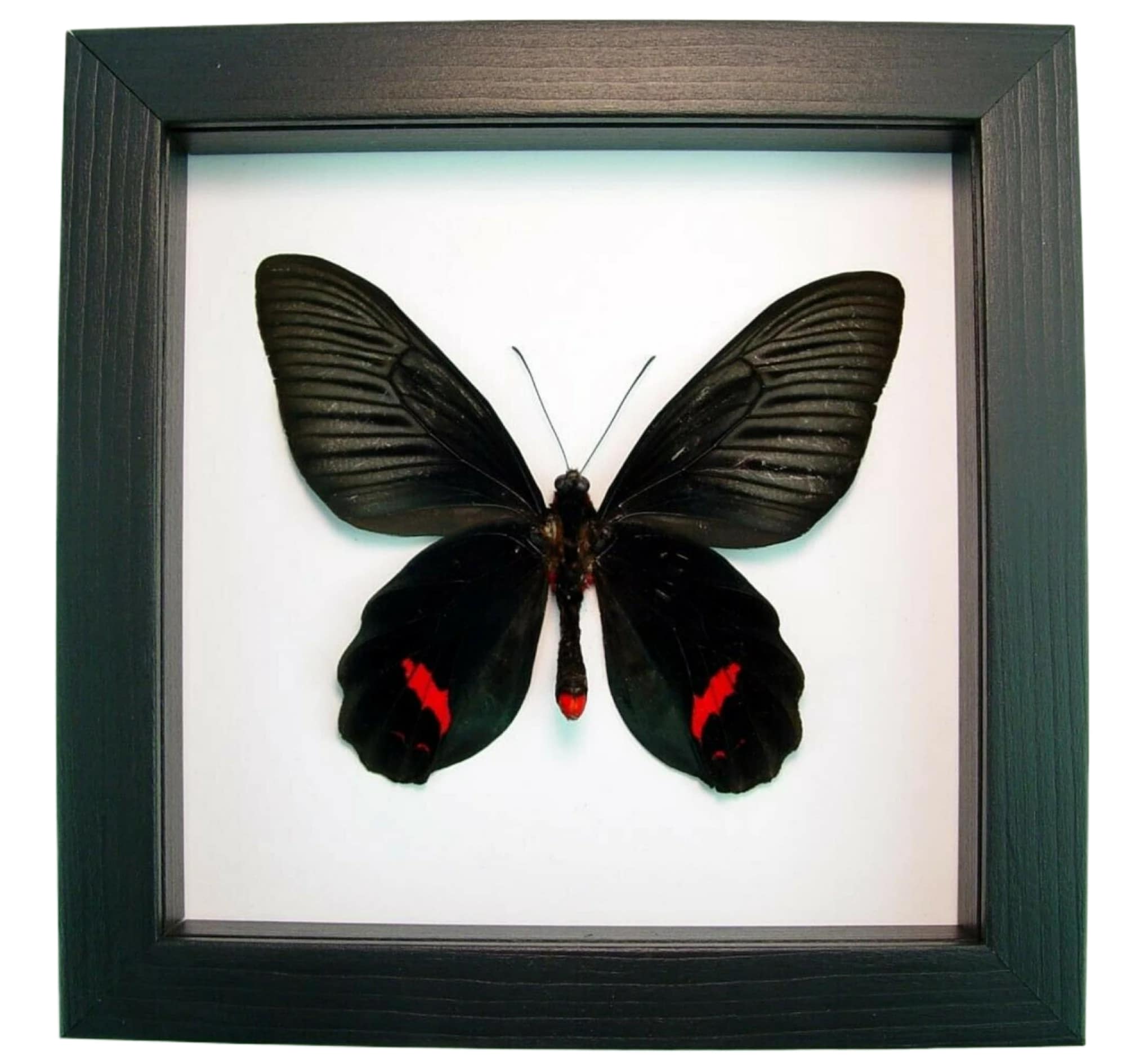 Giant Black Red Gothic Butterfly Atrophaneura Dixoni Verso Framed Taxidermy Classic Black Display