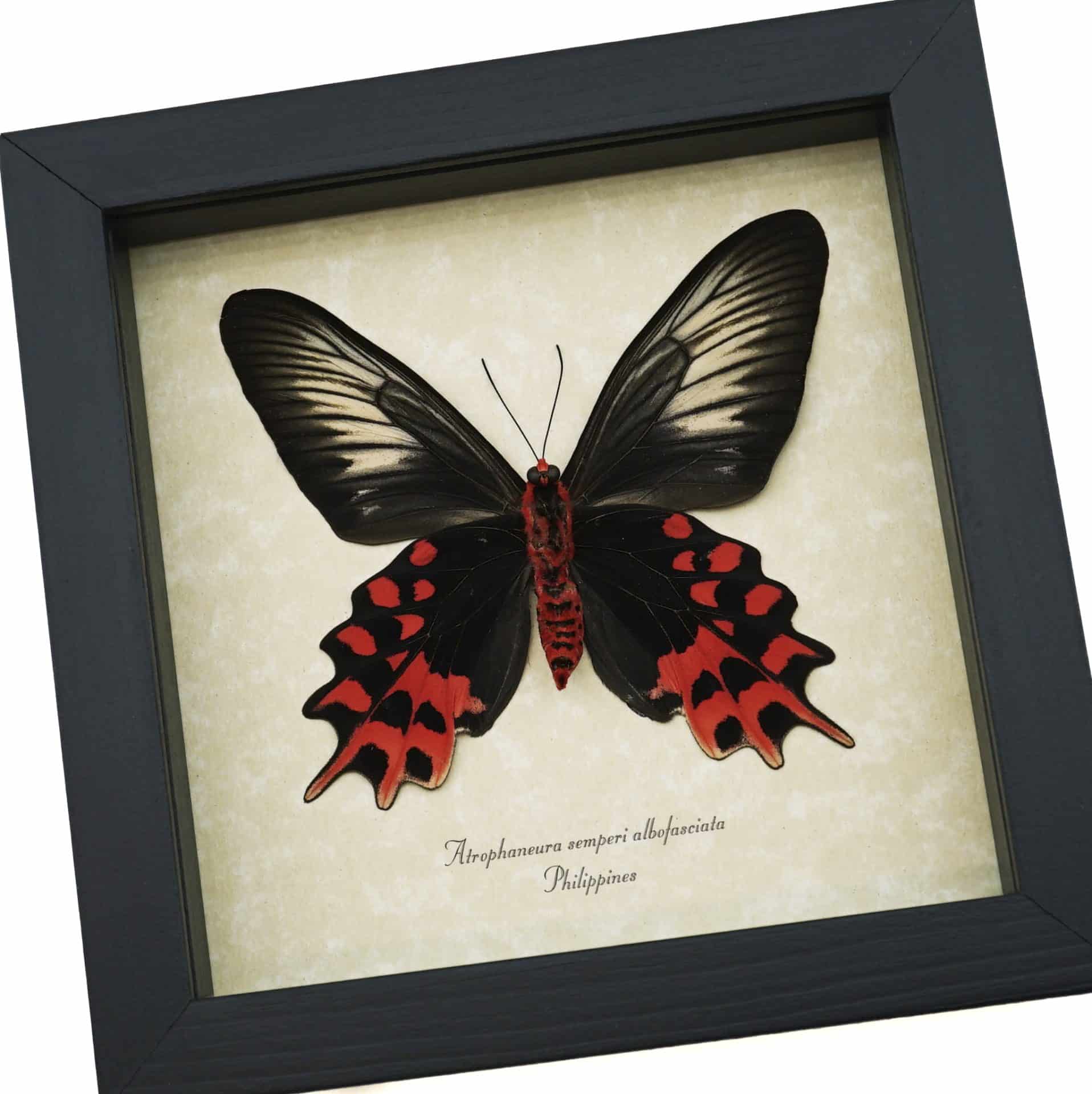 Atrophaneura semperi albofasciata Female Butterfly Blood Red Vampire Framed Taxidermy Display