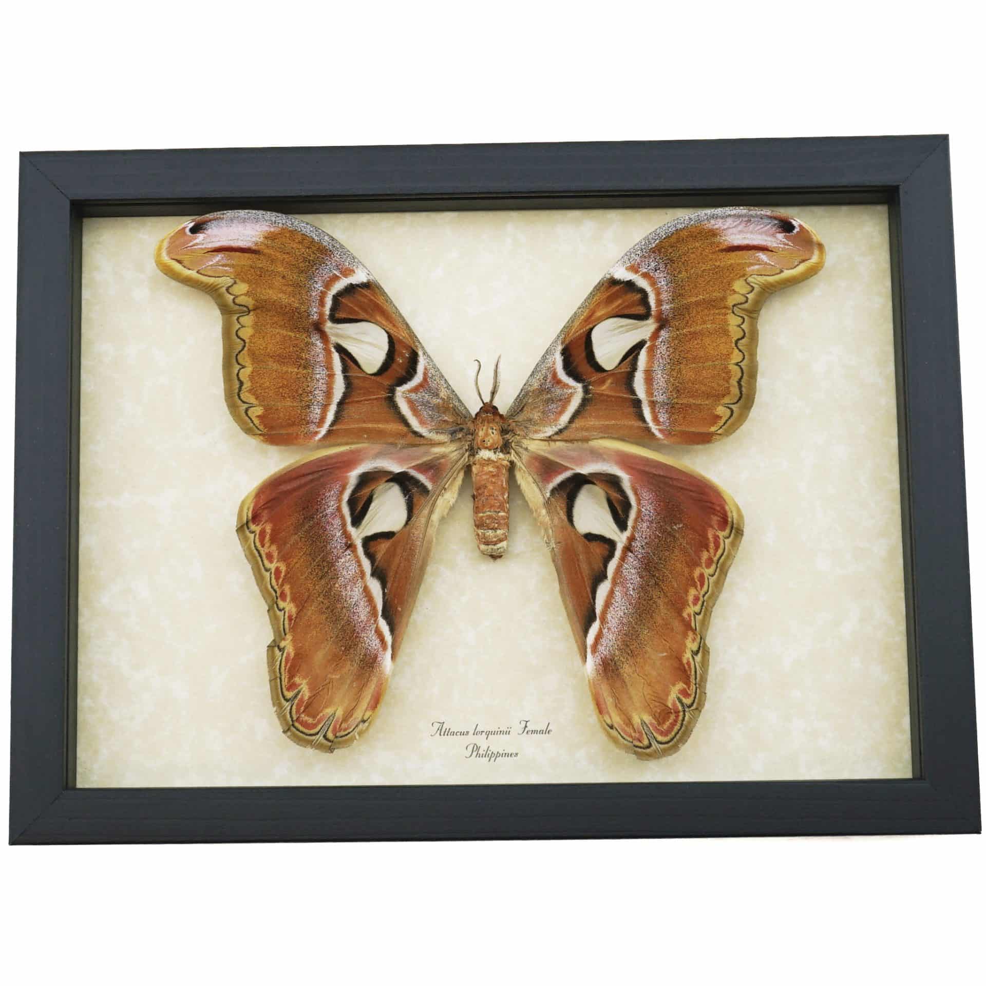 Attacus lorquinii Female Moth 7″+ Wingspan Snake Head Philippines Atlas Moth Real Framed Taxidermy