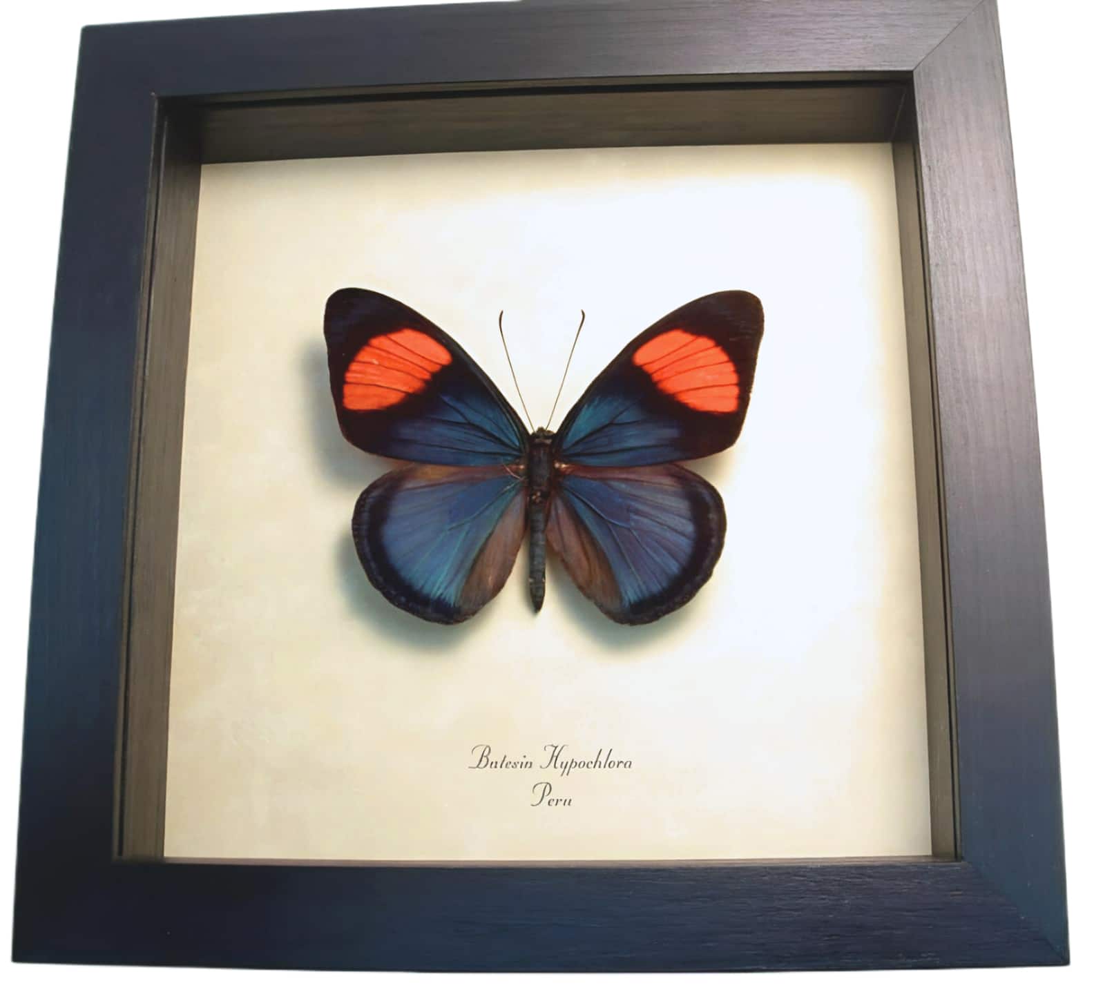 Real Framed Pink Blue Butterfly Batesia hypochlora Taxidermy Display