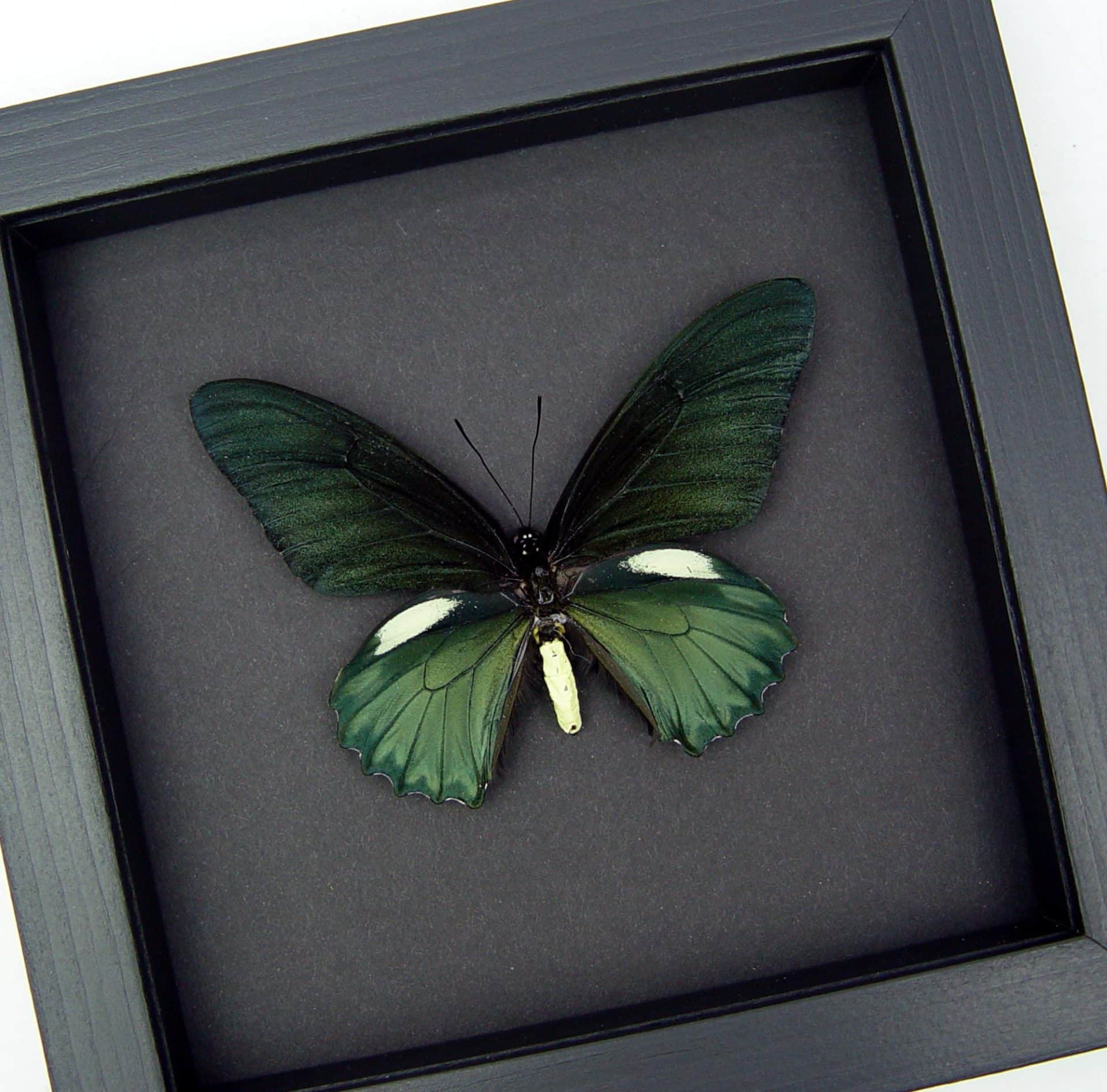 Battus belus Male Butterfly Metallic Green Moonlight Display Framed Taxidermy