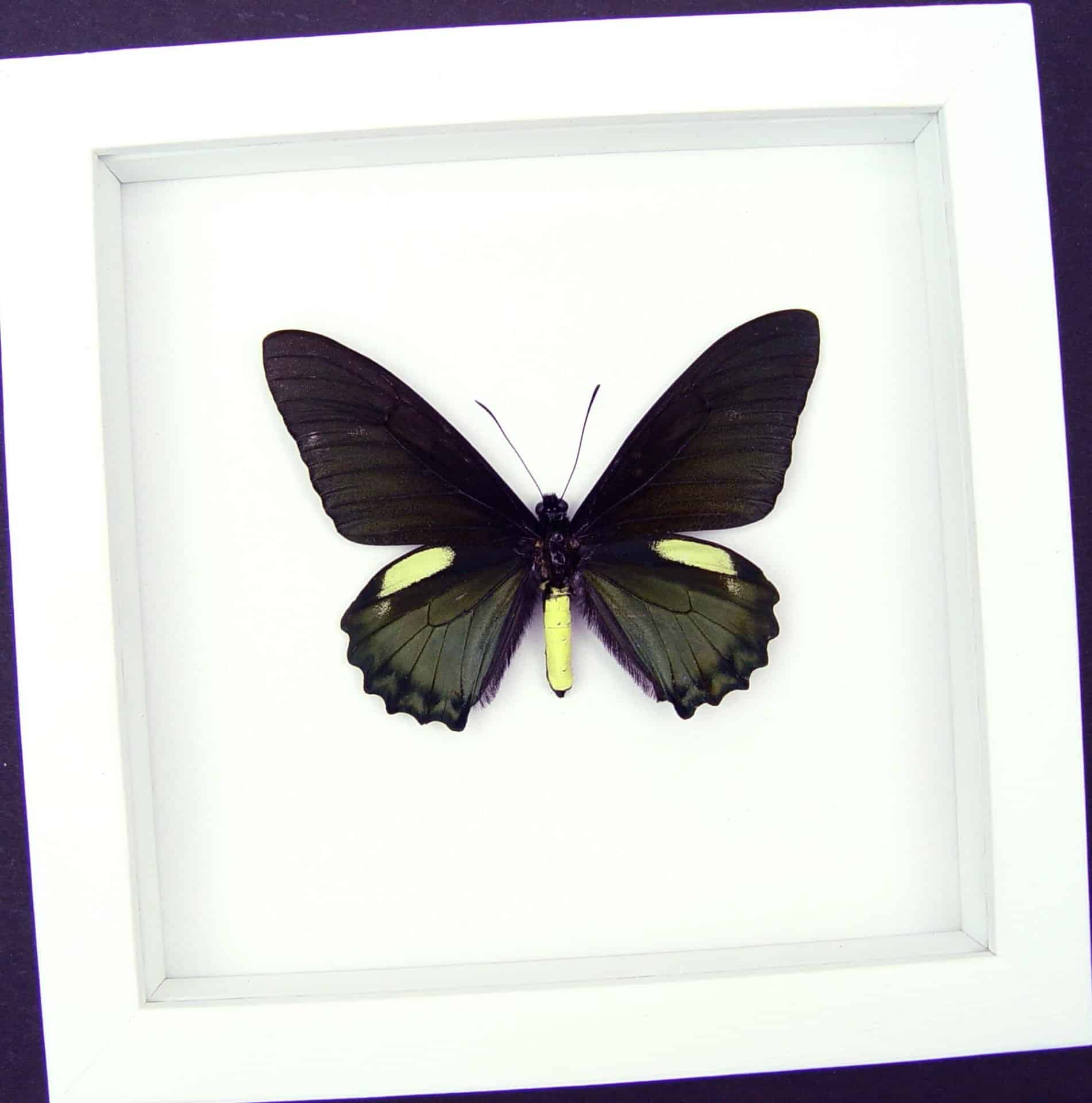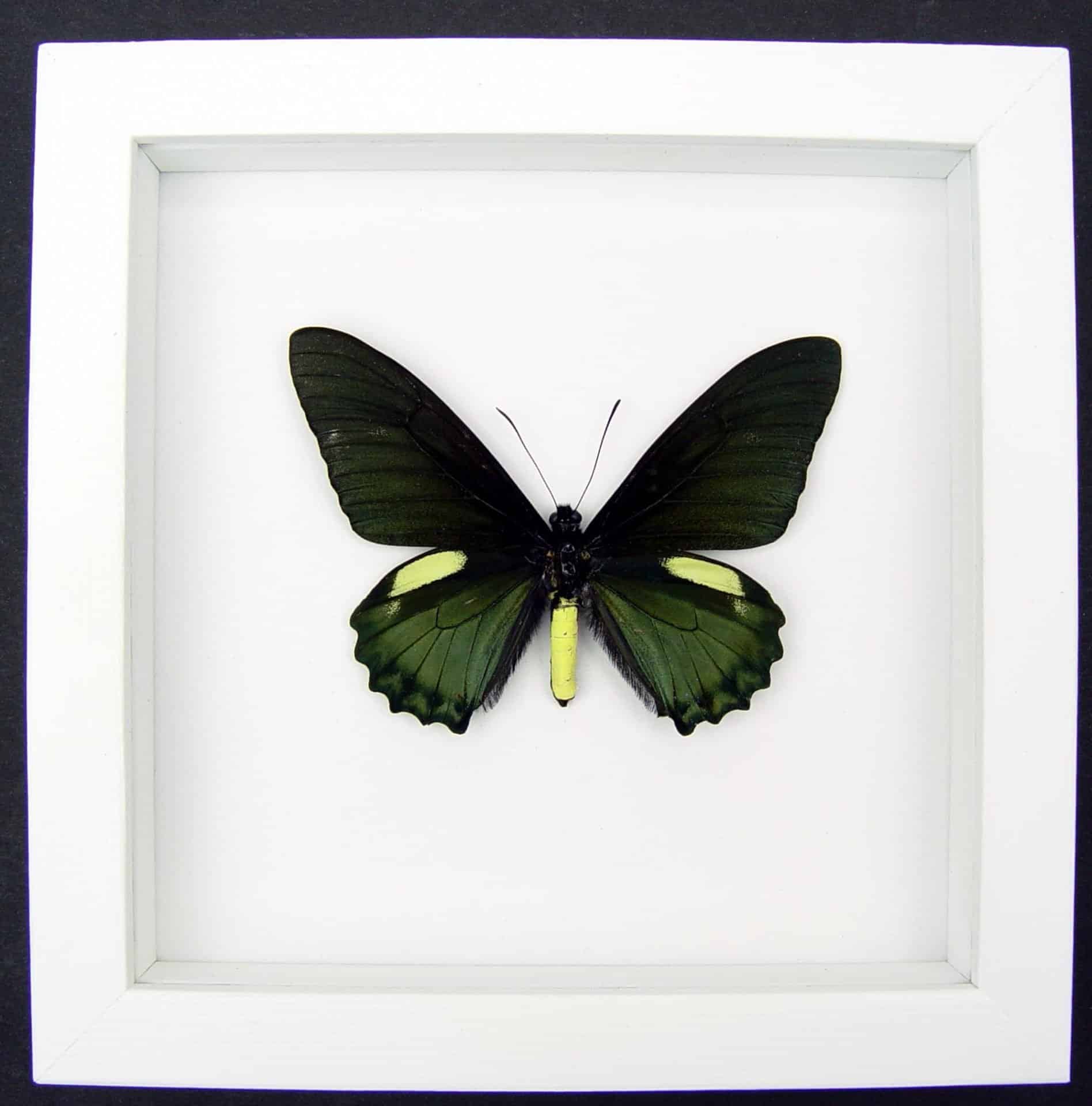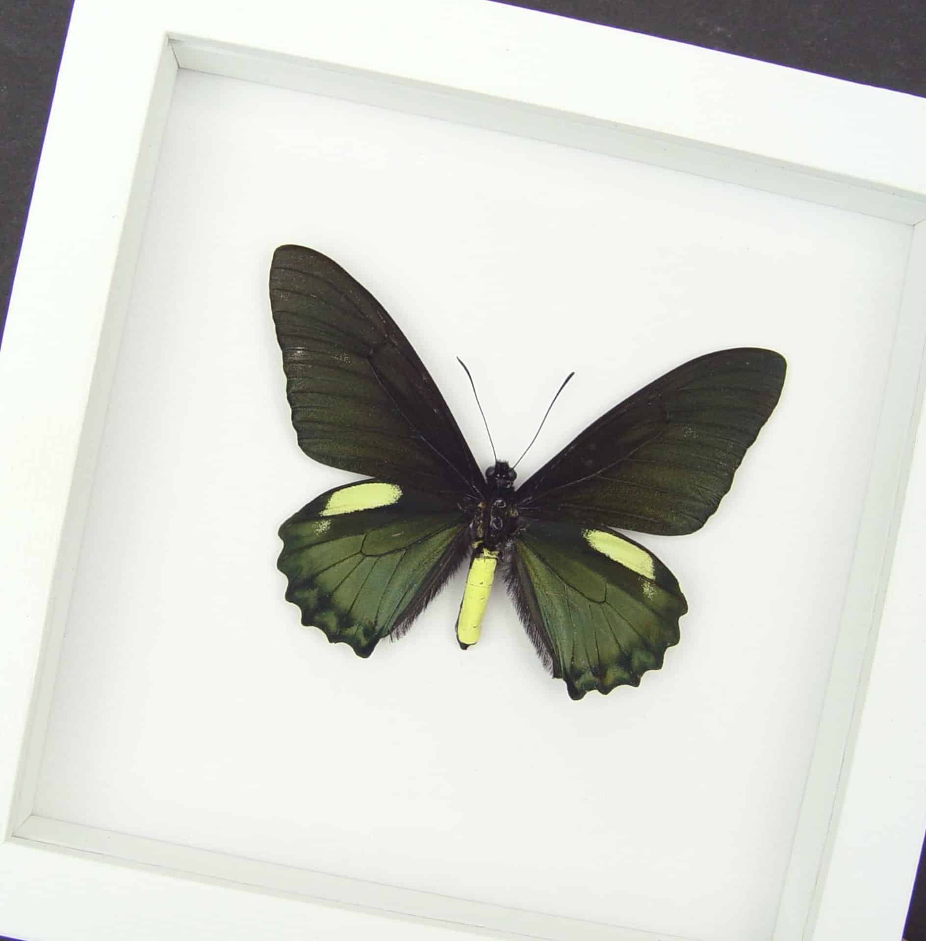 Battus belus Male Butterfly Metallic Green Vibrant White Display Framed Taxidermy
