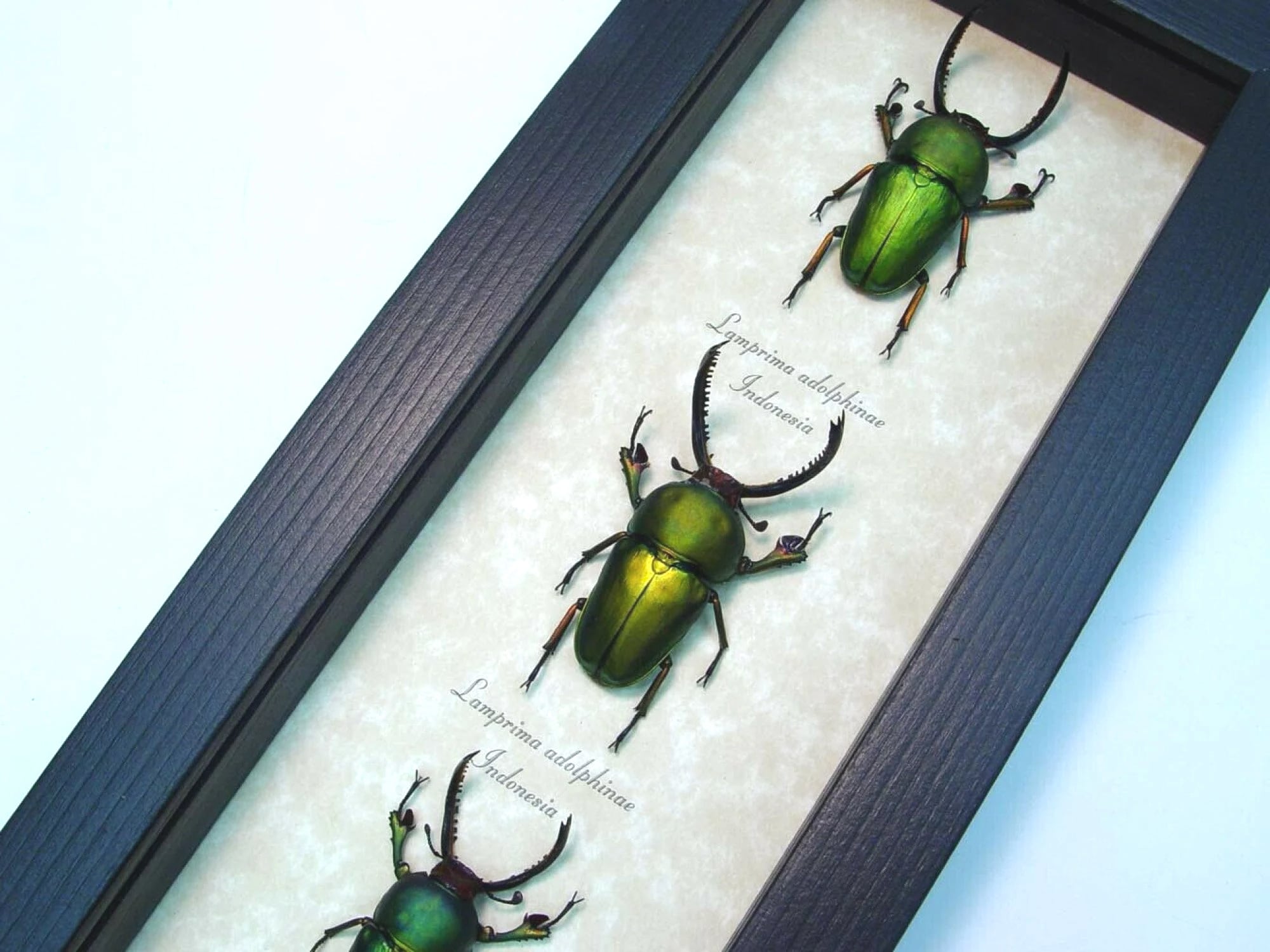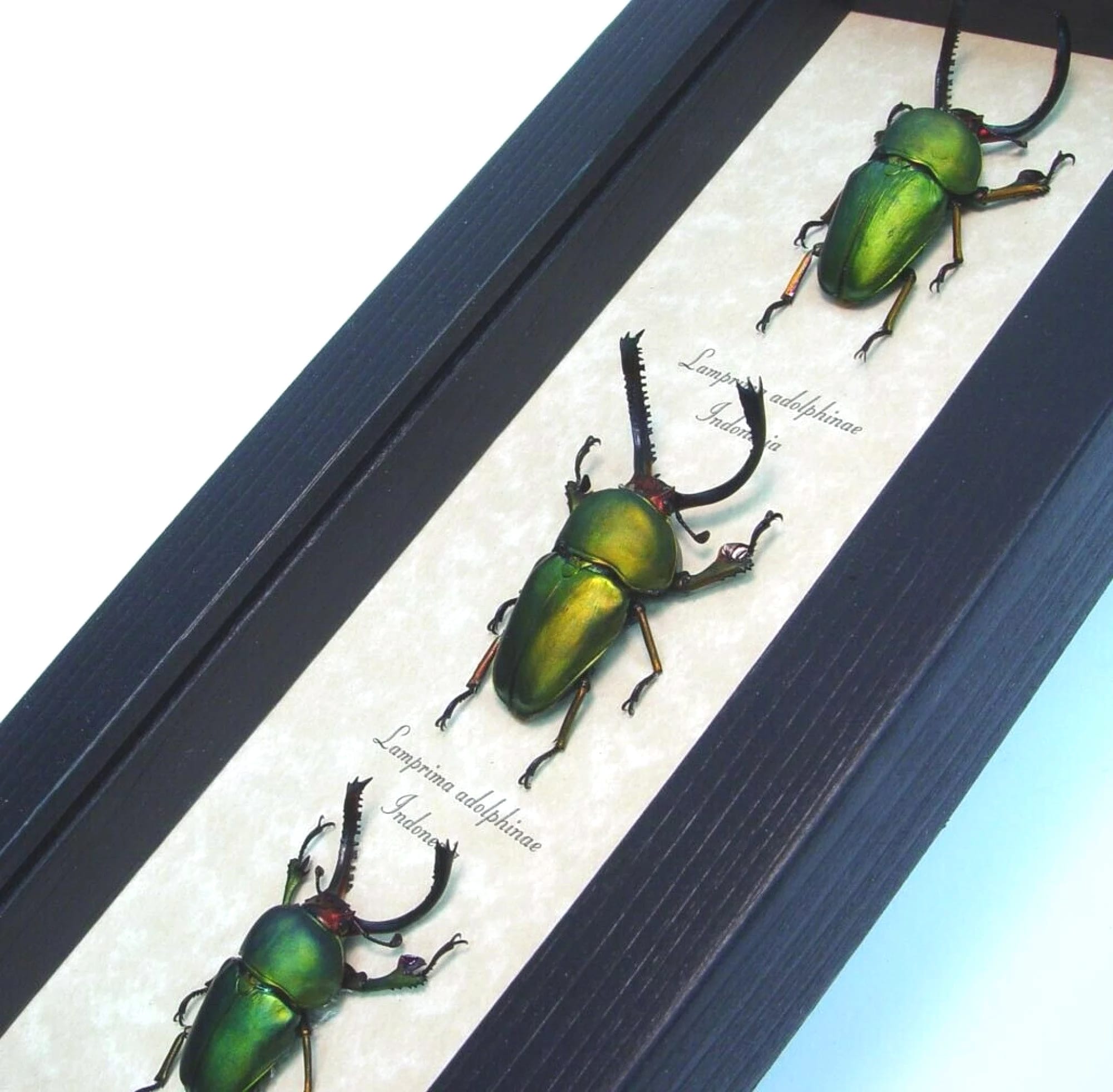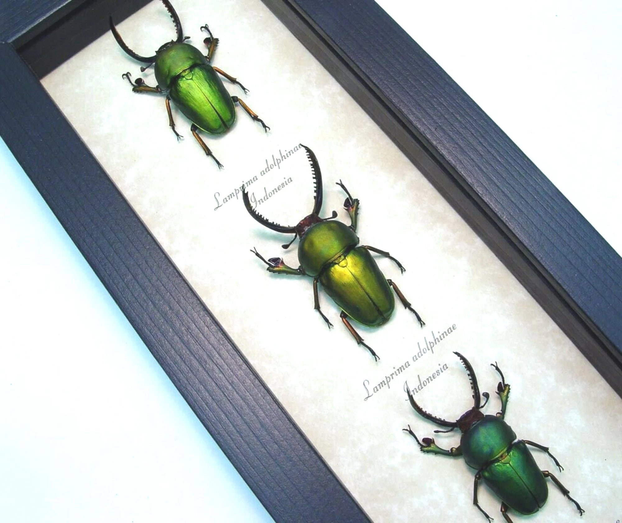 Beetle Collection Metallic Stag Beetles Lamprima adolphinae Set Framed Taxidermy Display