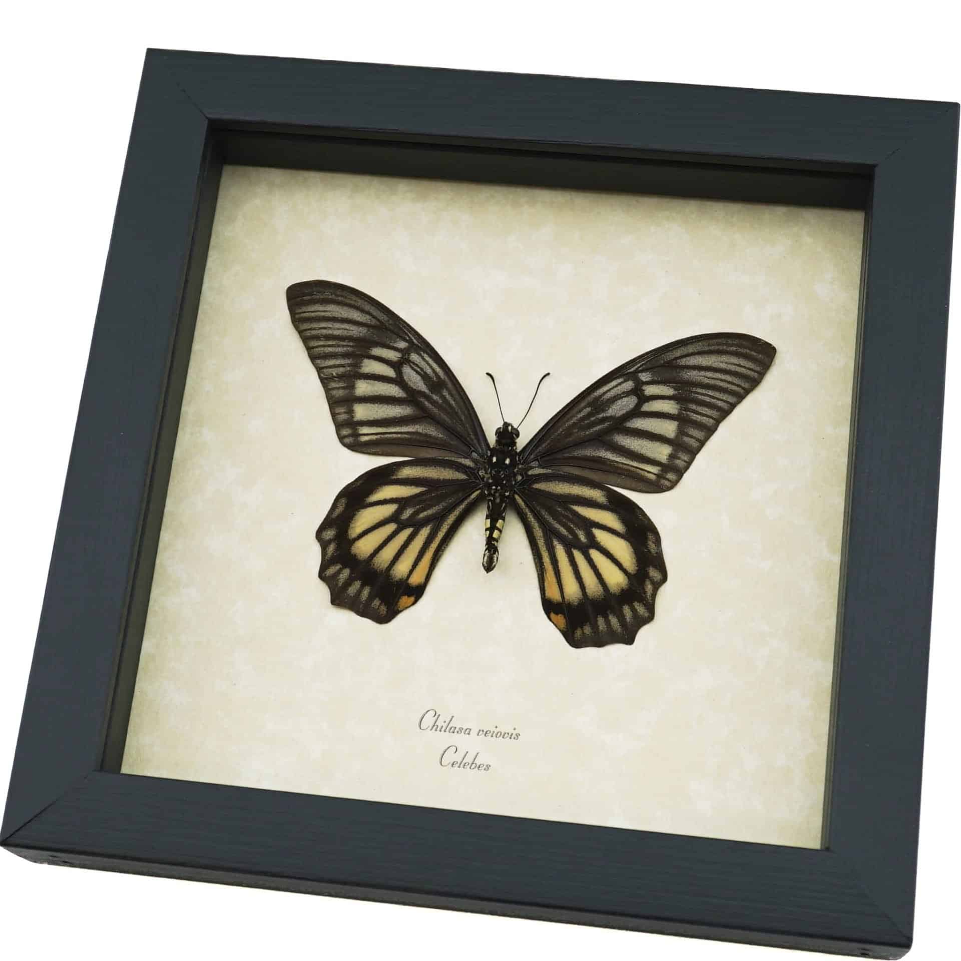 Black Gothic Skull Butterfly Chilasa veiovis verso Framed Taxidermy Display