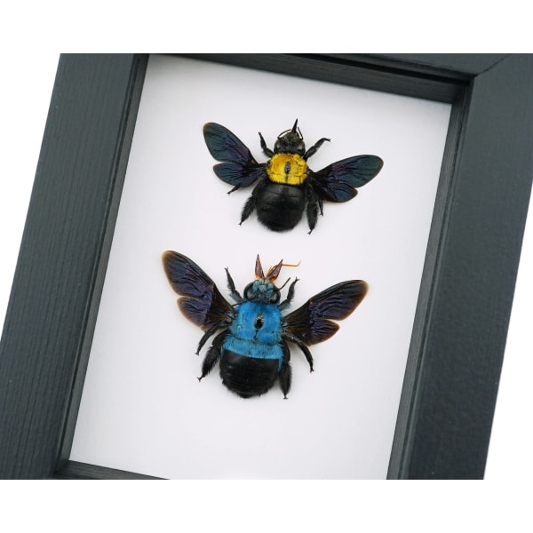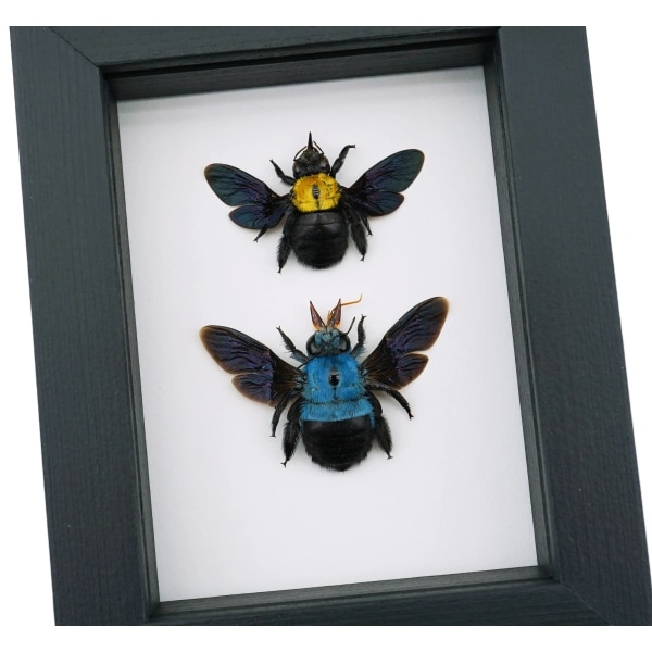 Blue Gold Carpenter Bee Collection Framed Taxidermy Classic Black Display