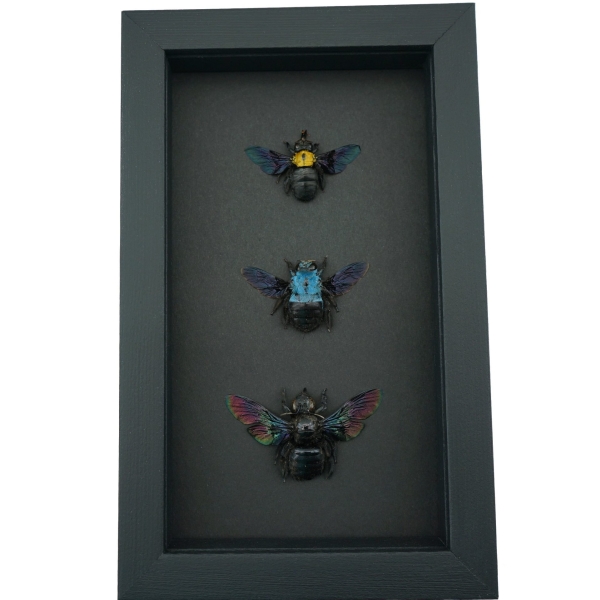 Blue Gold Rainbow Carpenter Bee Collection Xylocopa caerulea confusa latipes Female Framed Moonlight Display