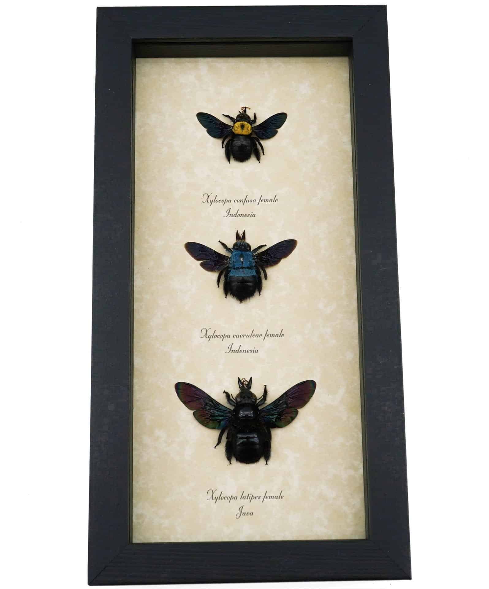 Blue Gold Rainbow Carpenter Bee Collection Xylocopa caerulea confusa latipes Female Framed Taxidermy