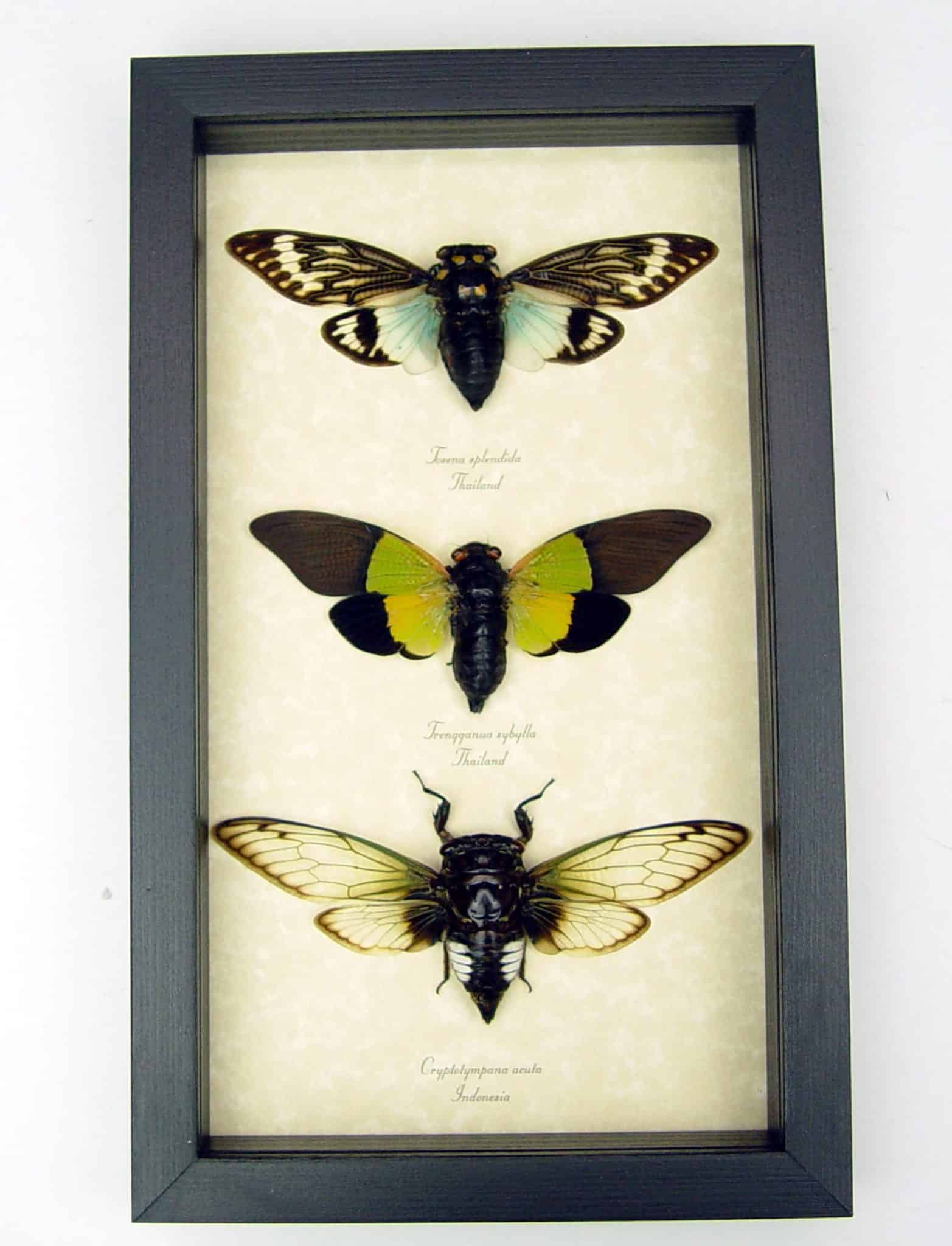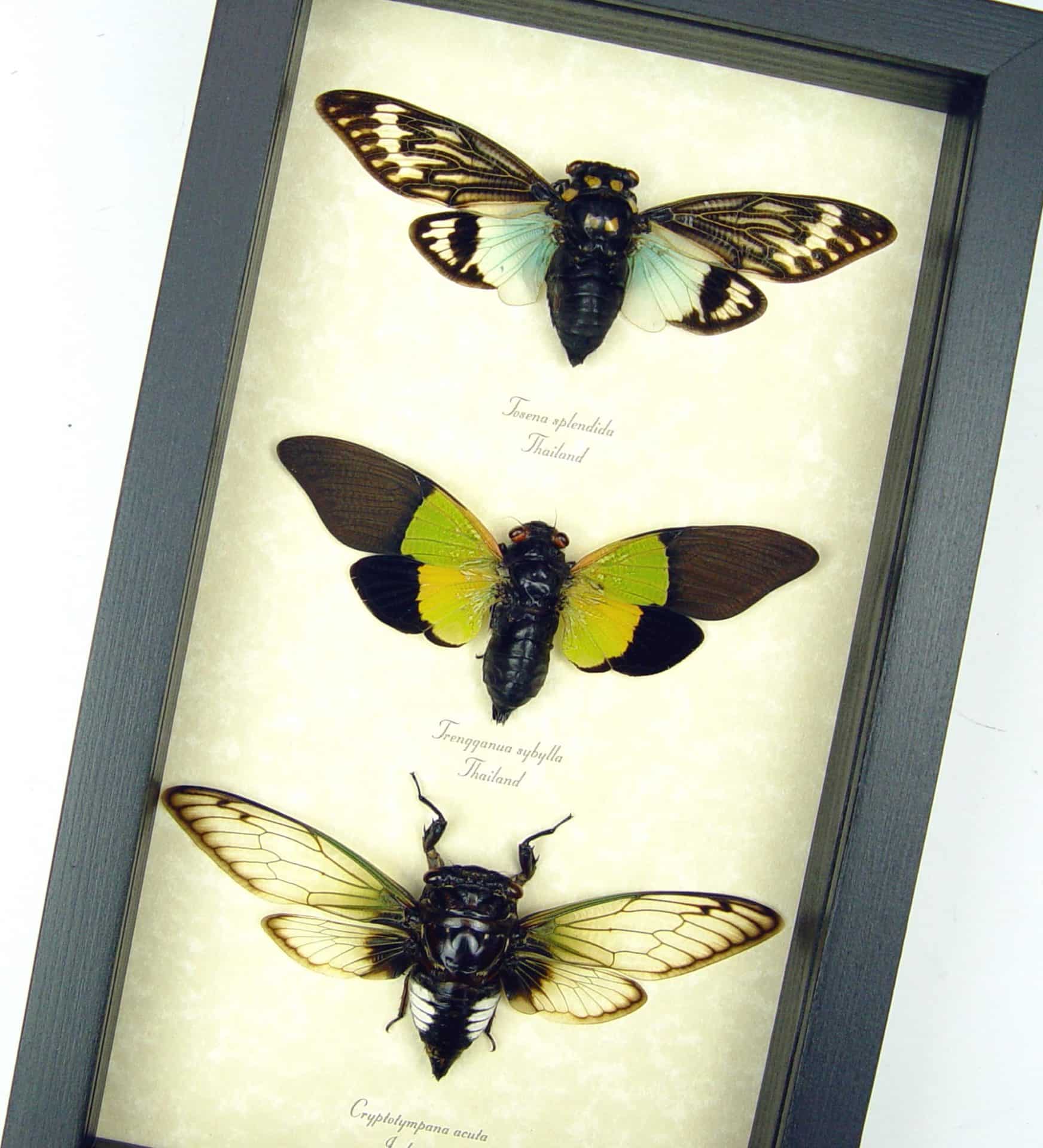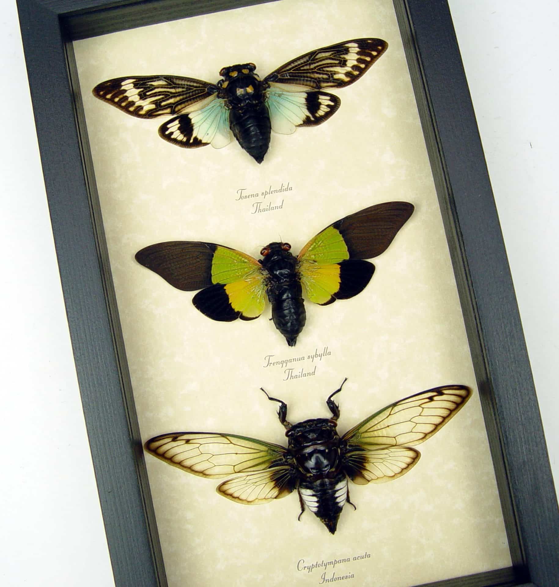 Blue Green Clear Winged Cicada Collection Real Framed Insect Taxidermy Display