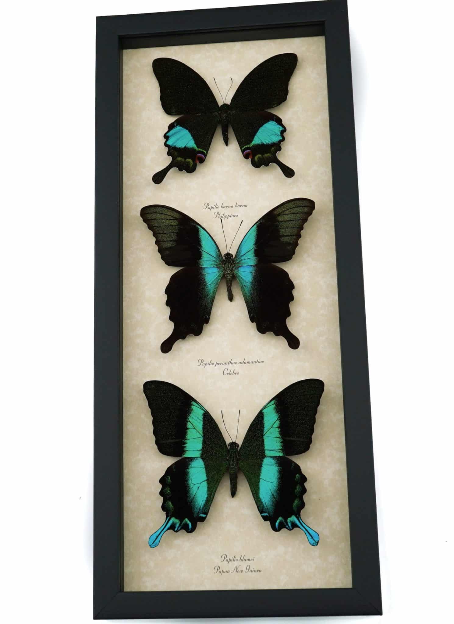Butterfly Trio Papilio Karna Peranthus Blumei Framed Peacock Swallowtail Butterflies Taxidermy Display
