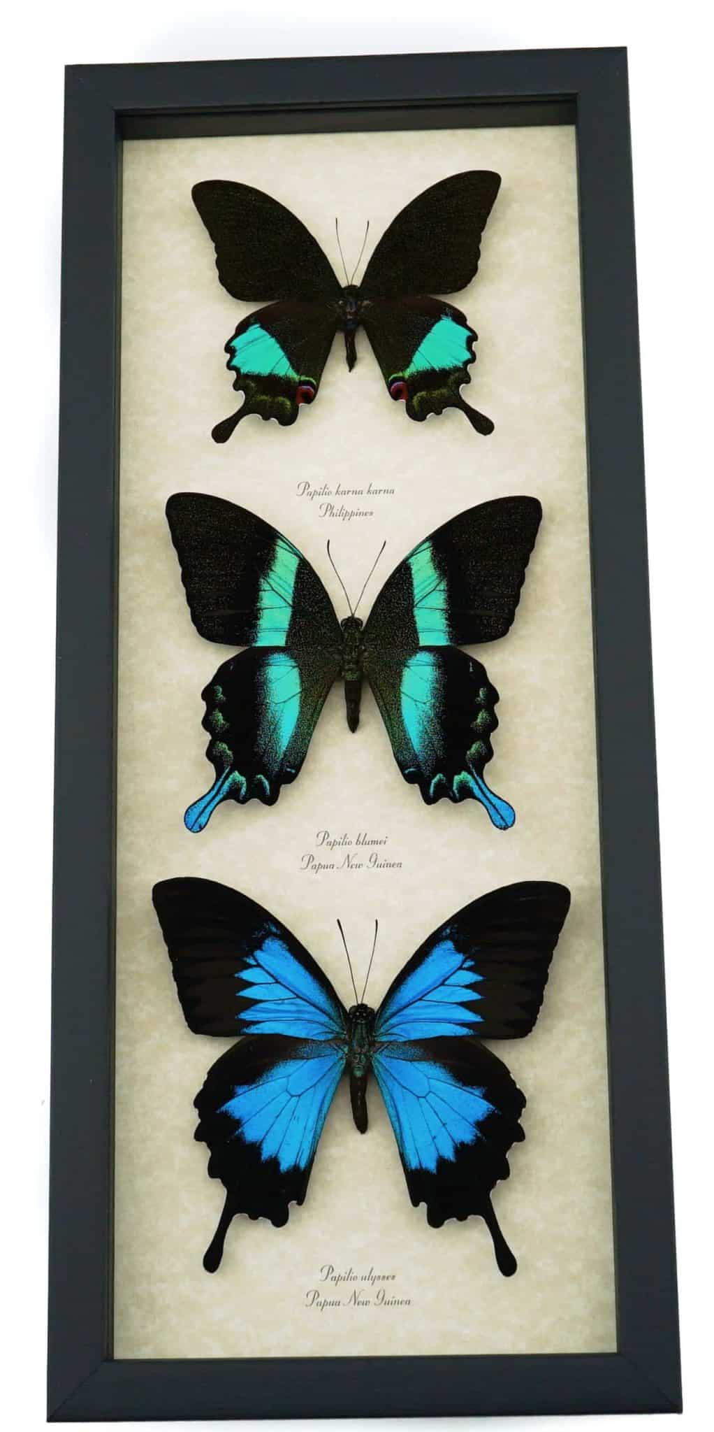 Butterfly Trio Papilio Ulysses Blumei Karna Framed Peacock Swallowtail Butterflies Taxidermy Display
