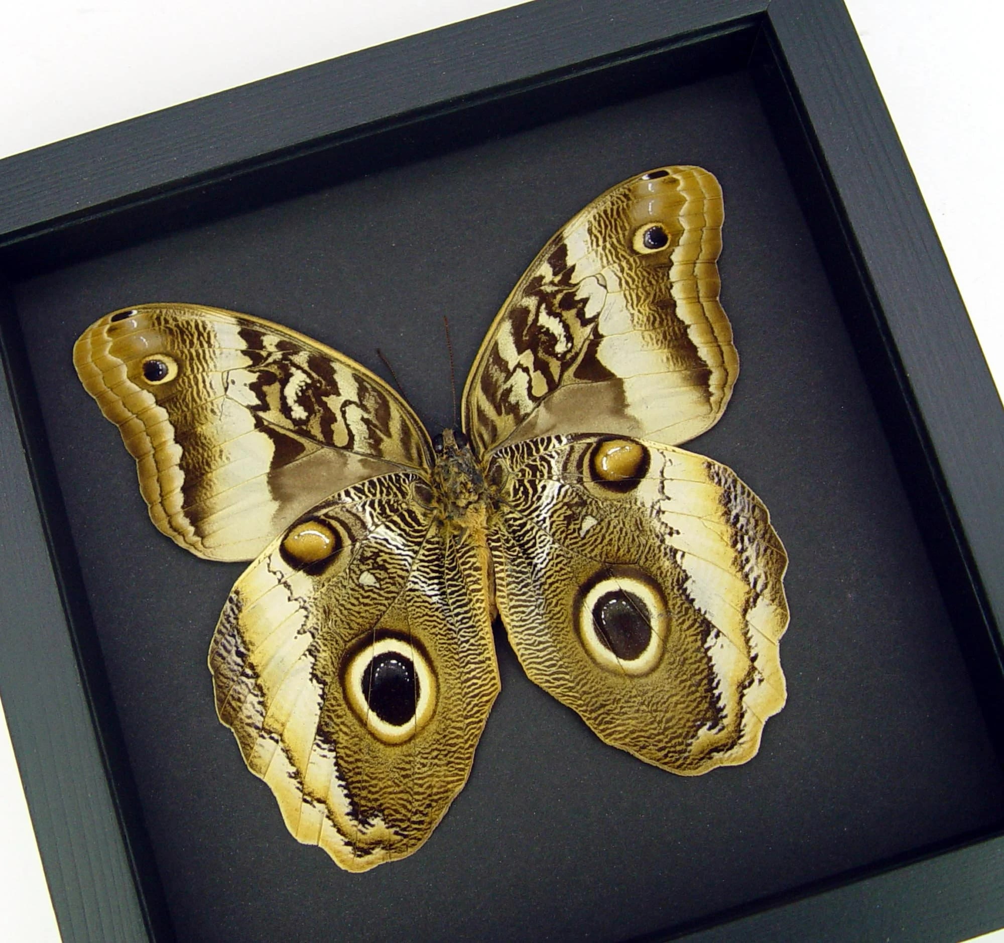Real Framed Owl Butterfly Caligo atreus ajax Verso Taxidermy Moonlight Display