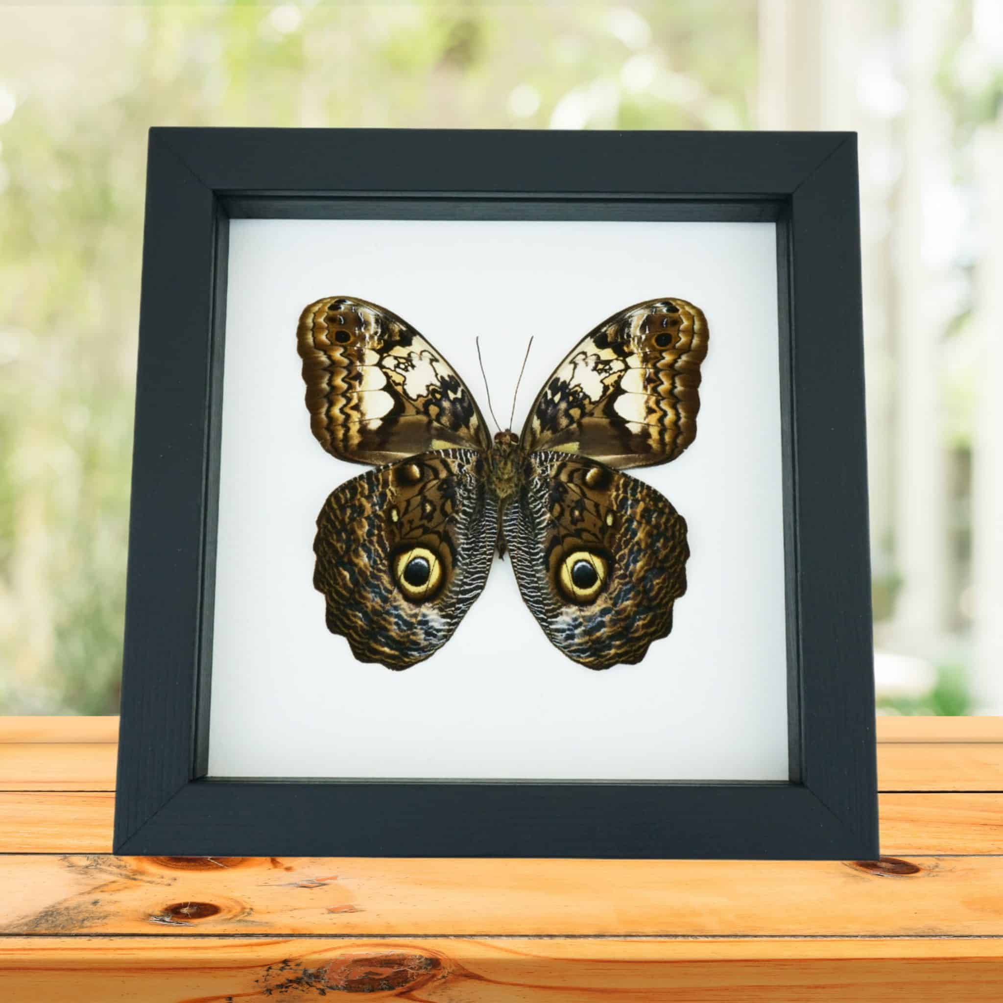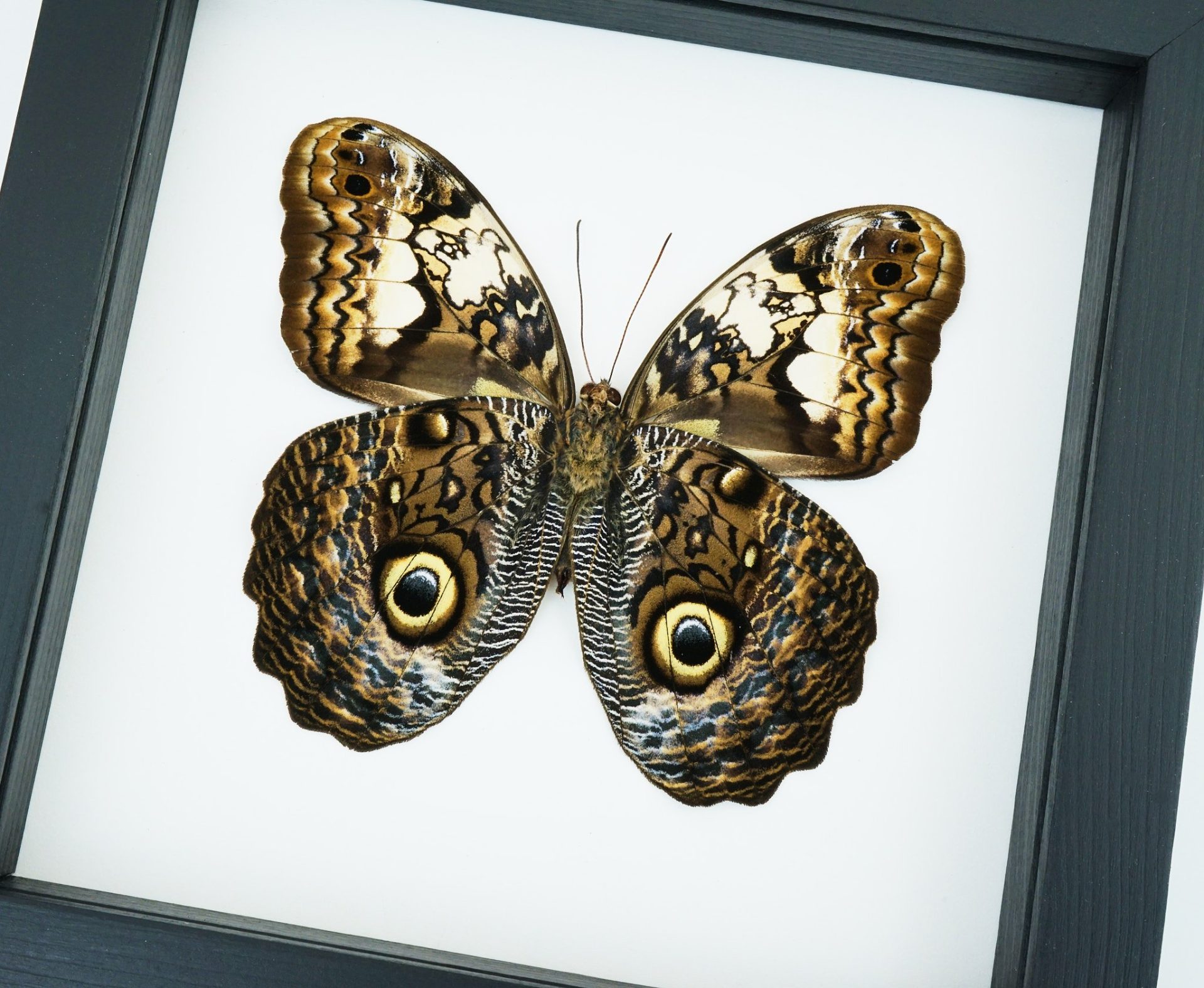 Caligo martia verso Rare Owl Mimic Butterfly Feather Markings Framed Taxidermy Classic Black Display