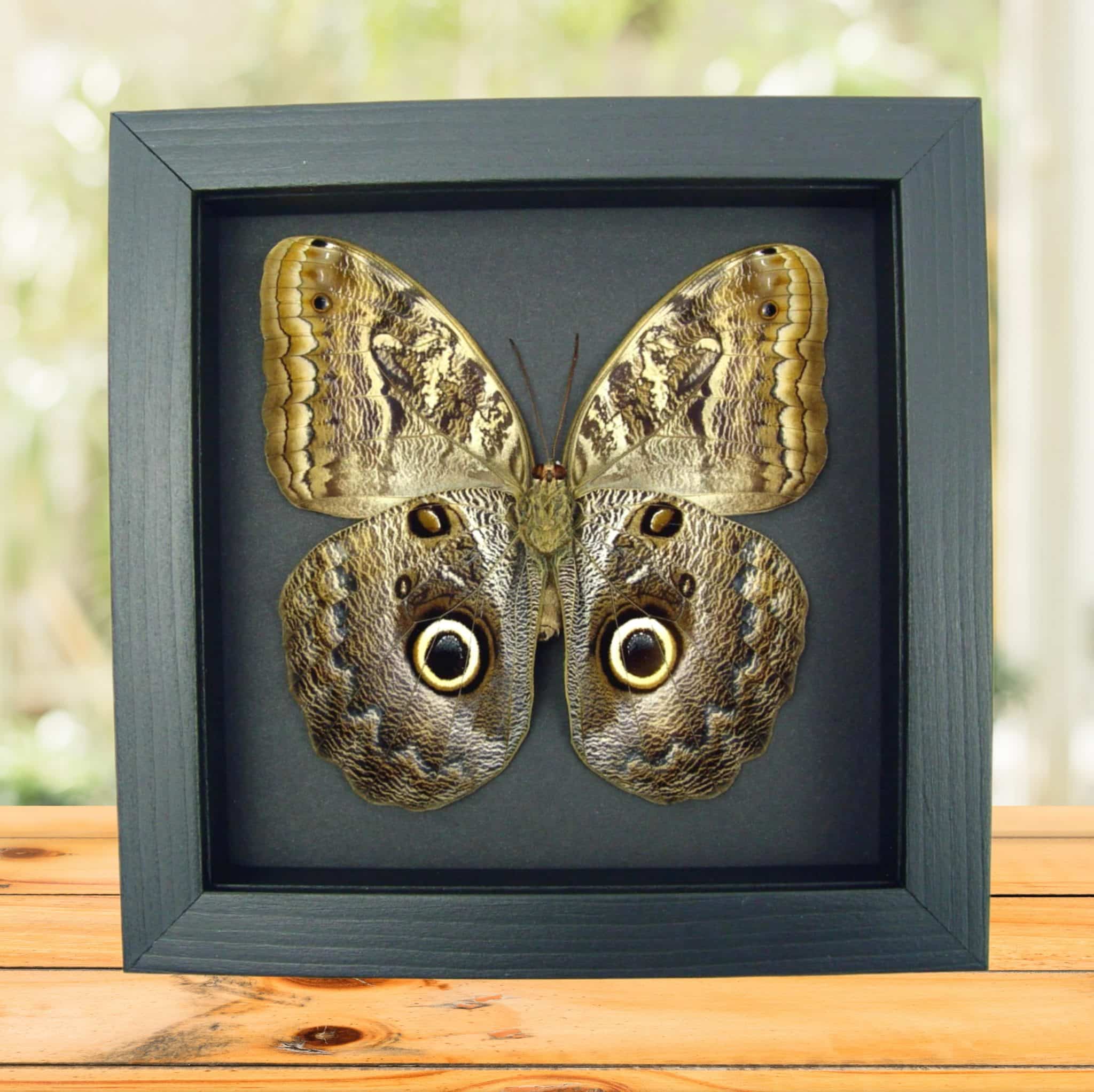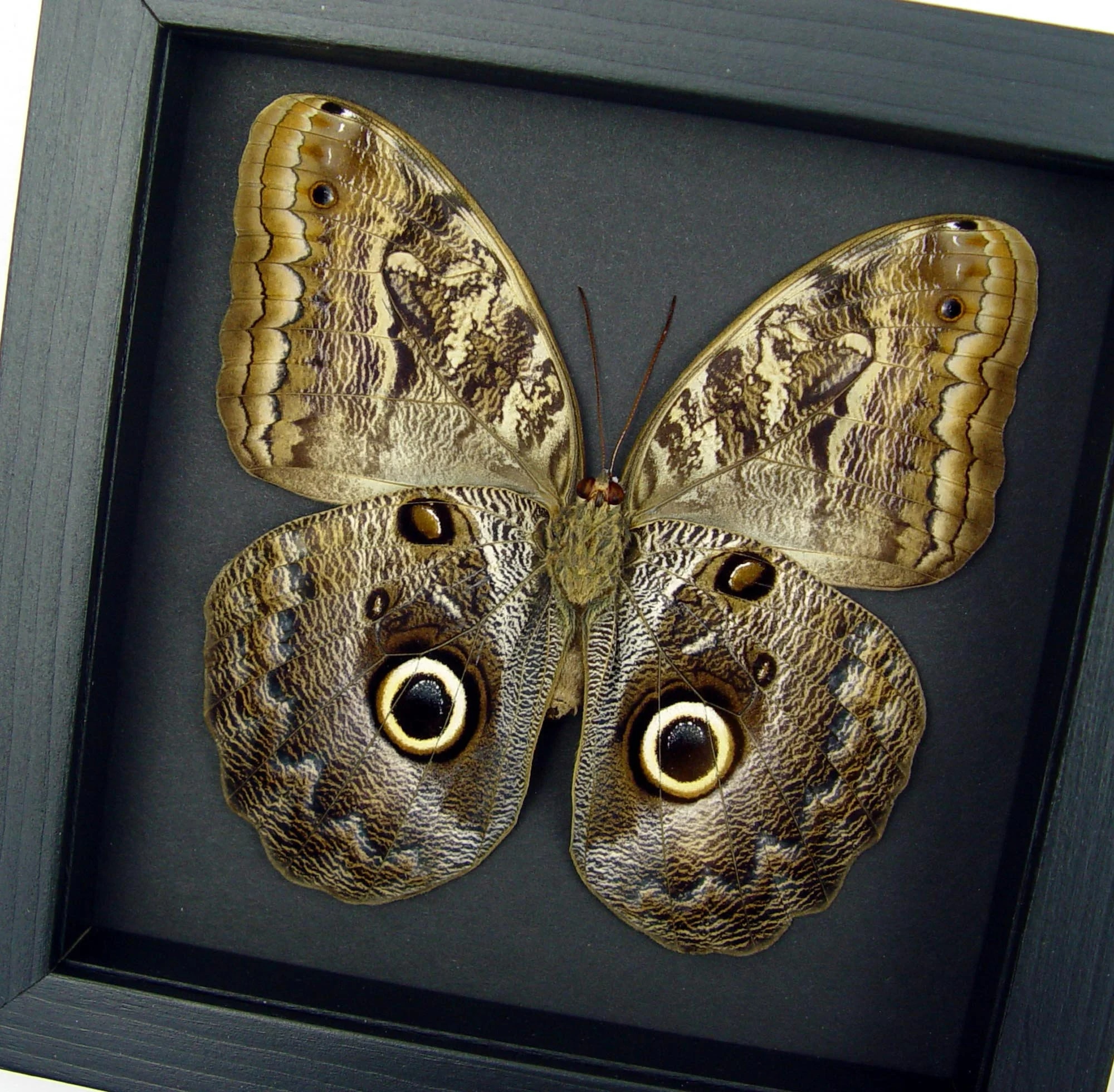 Real Framed Owl Butterfly Caligo placidianus Taxidermy Moonlight Display