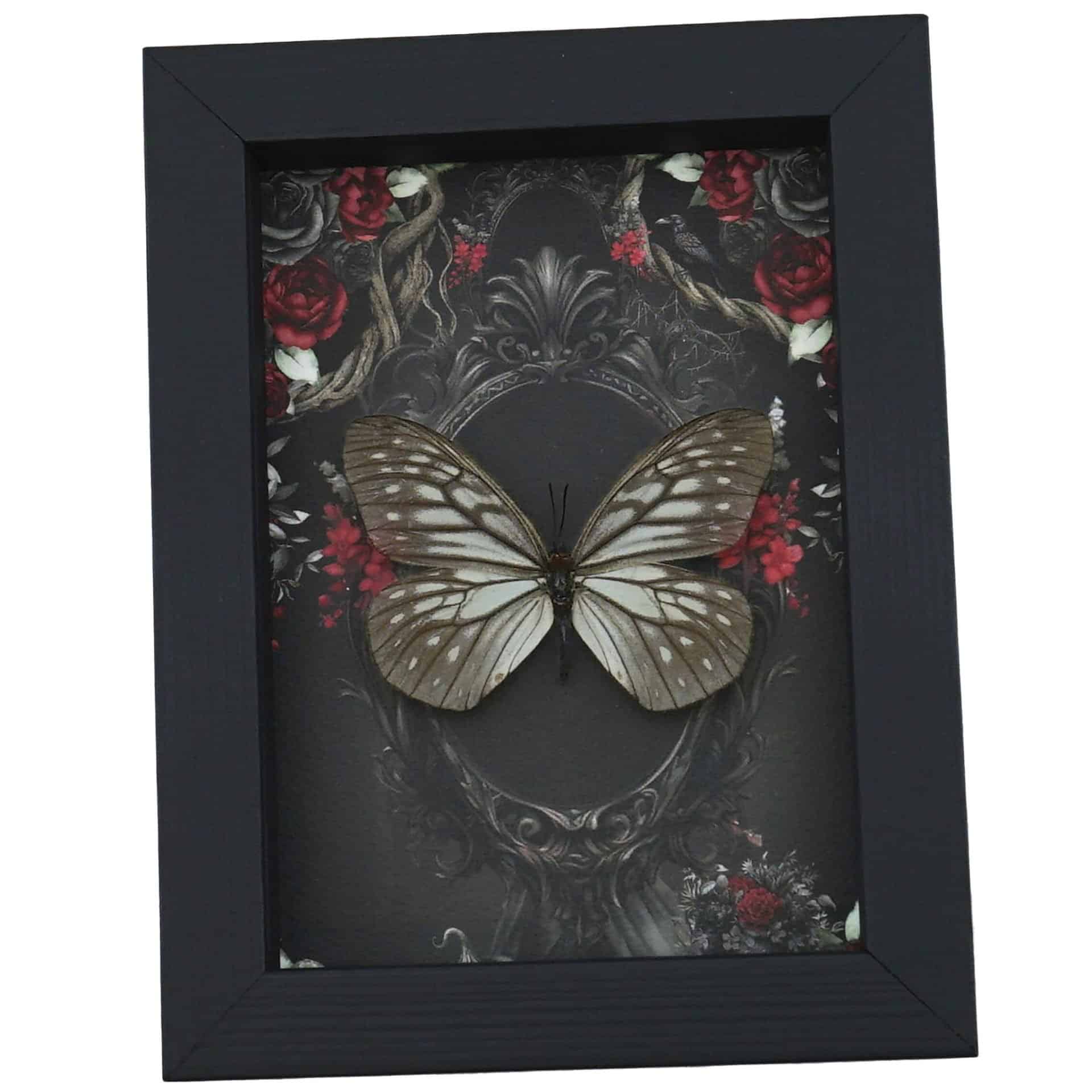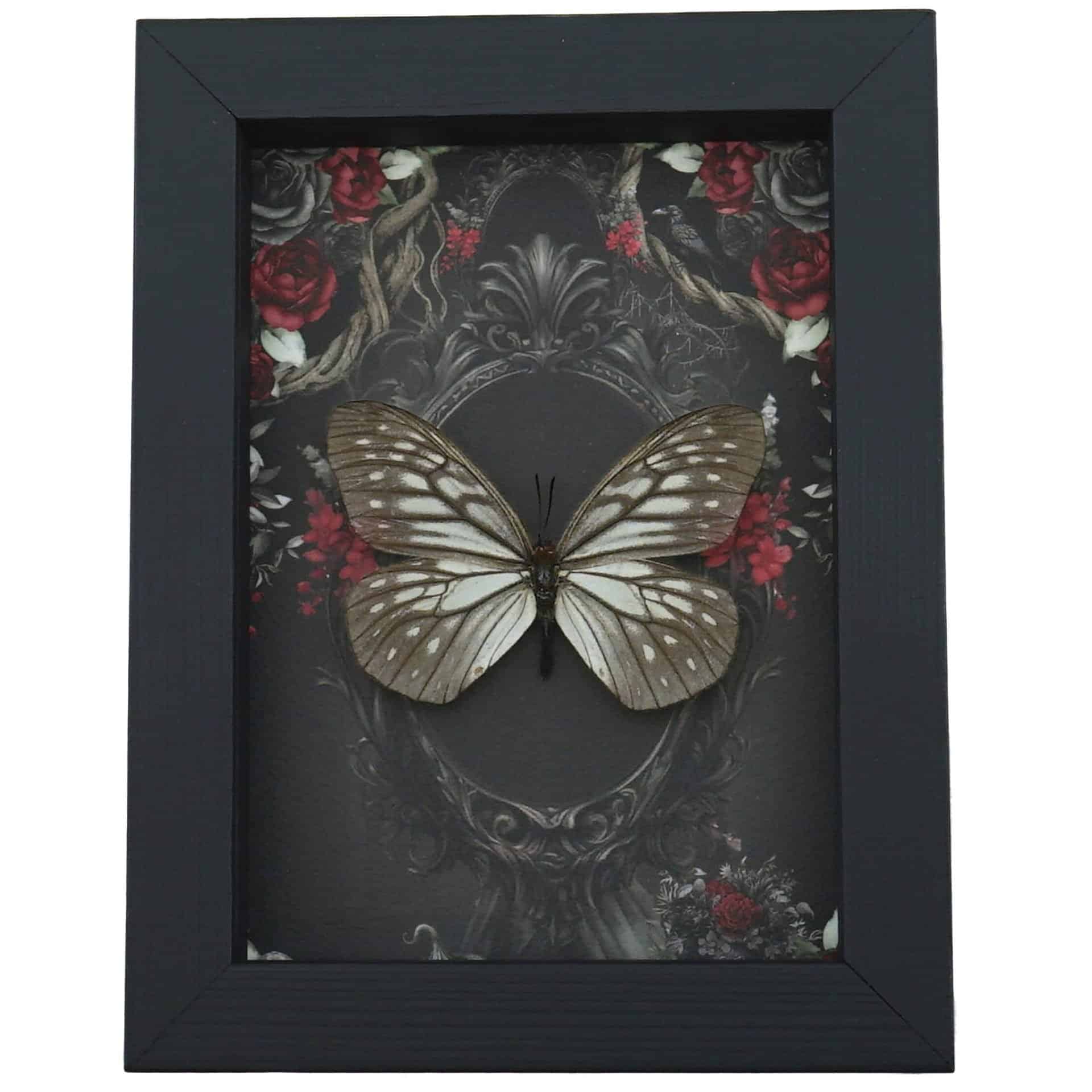Calinaga buddha Real Butterfly Gothic Black Red Roses Framed Taxidermy Display