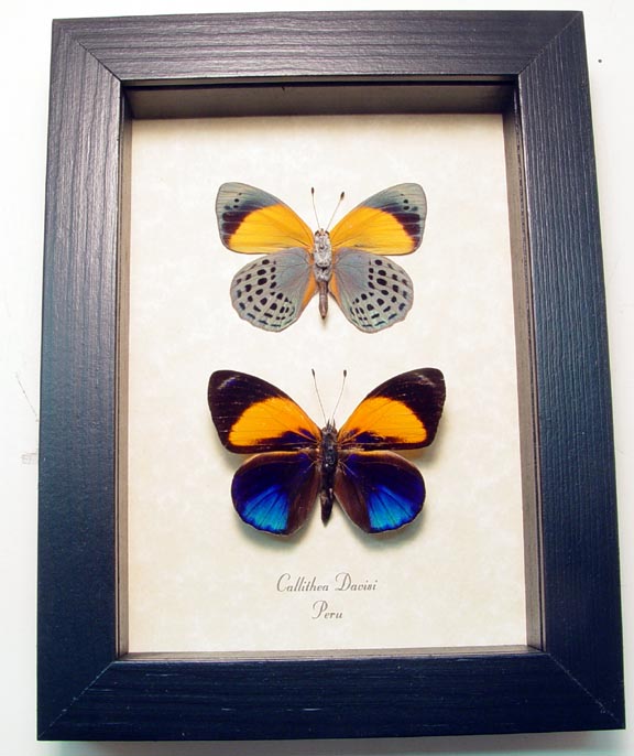 Callithea davisi Set Blue Orange Butterflies Framed Taxidermy Display