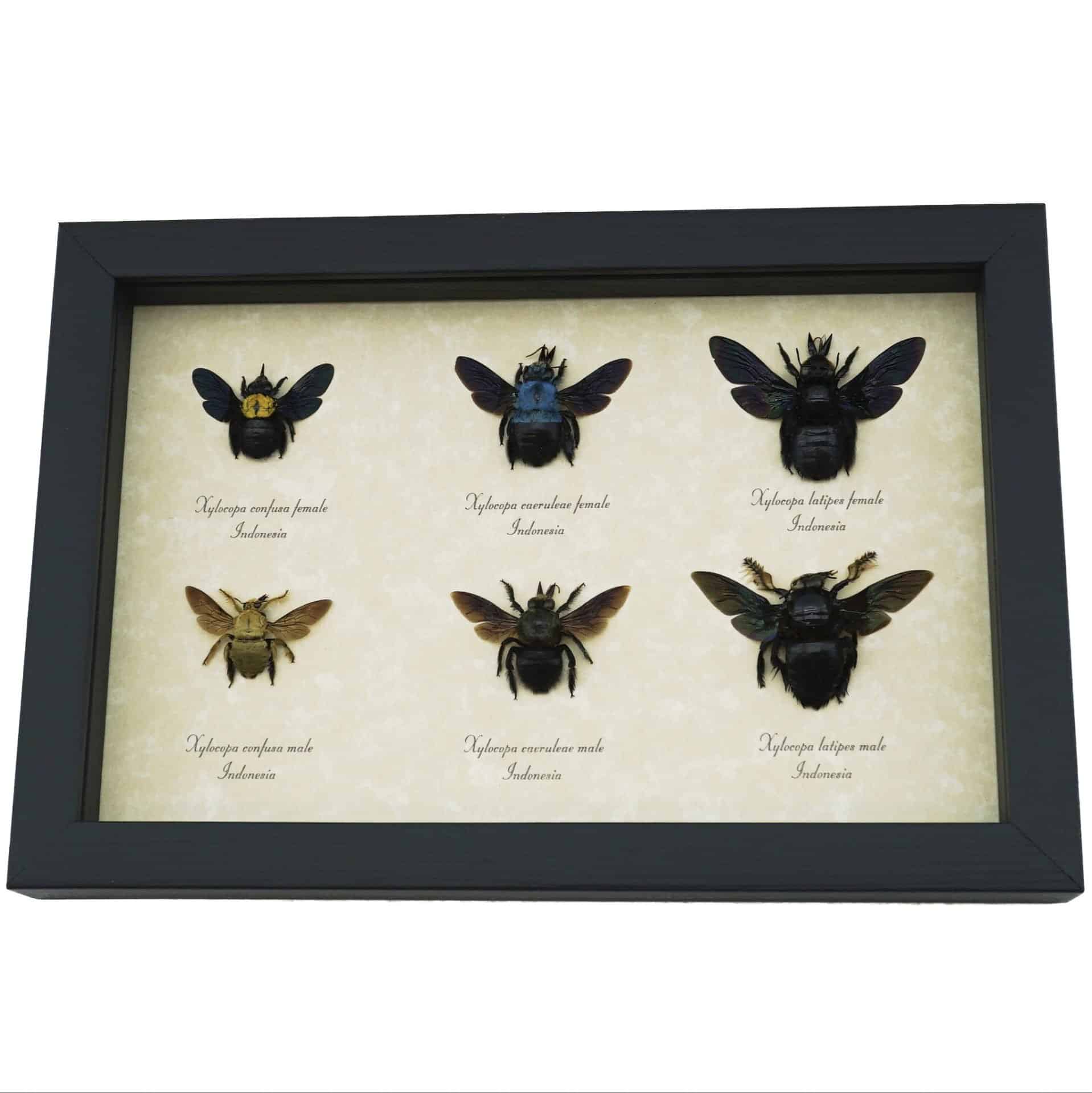Carpenter Bee Collection Blue Gold Rainbow Bees Framed Taxidermy Display