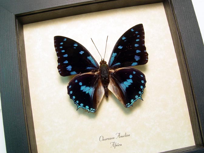 Charaxes ameliae Blue African Butterfly Framed Taxidermy Display