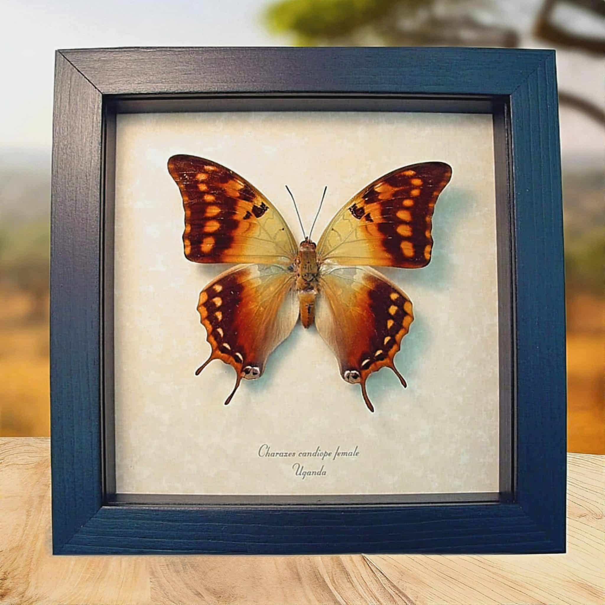 Charaxes candiope Female African Dagger Tail Butterfly Framed Taxidermy Display