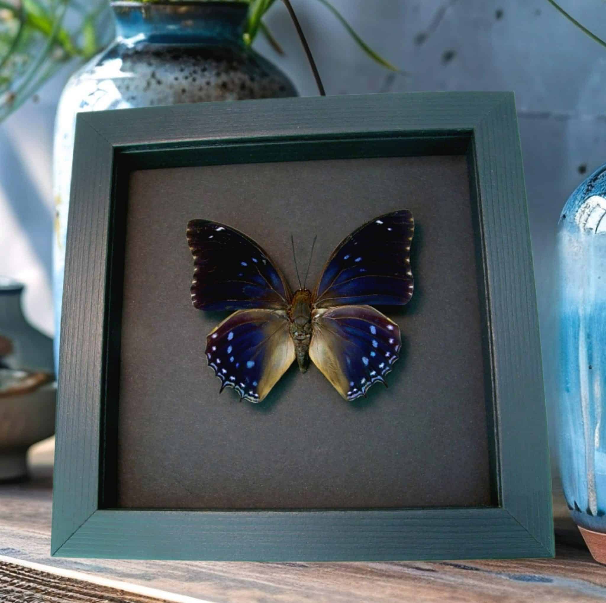 Charaxes mixtus Blue African Butterfly Framed Taxidermy Moonlight Display