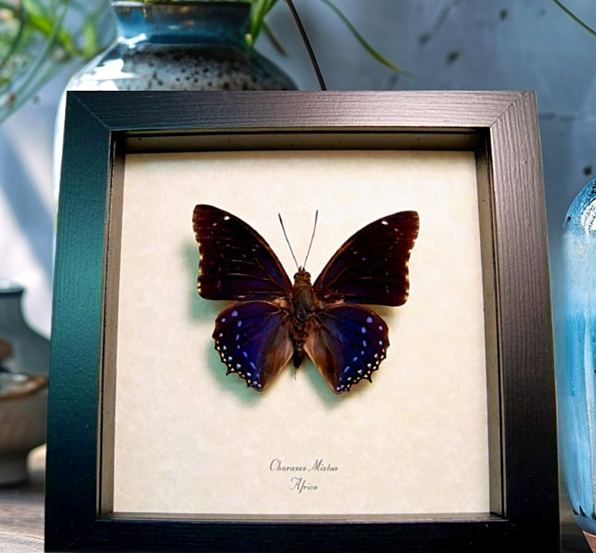 Charaxes mixtus Blue African Butterfly Real Framed Butterfly Art
