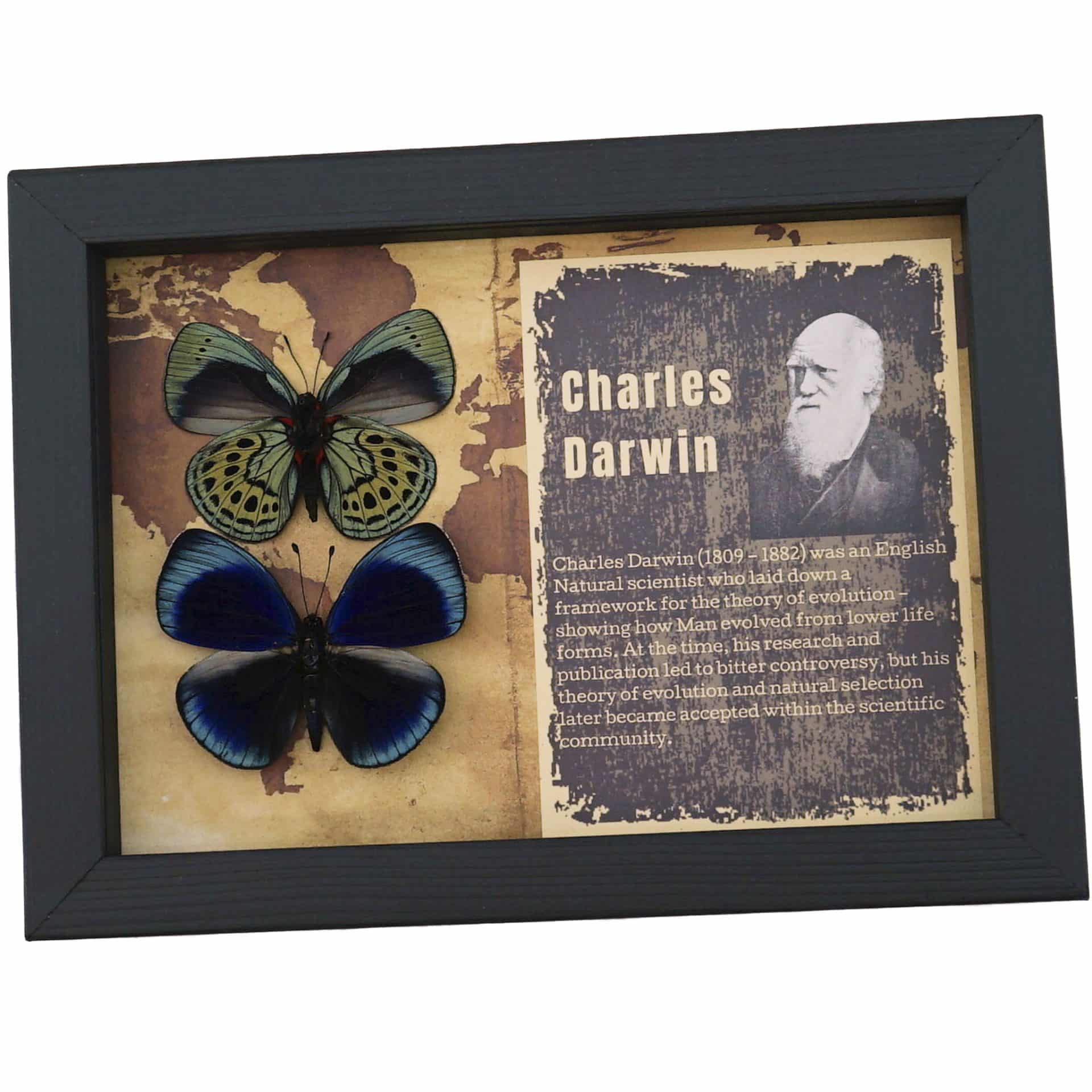 Charles Darwin Butterfly Pair Callithea philotima Asterope leprieuri Framed Taxidermy Butterflies