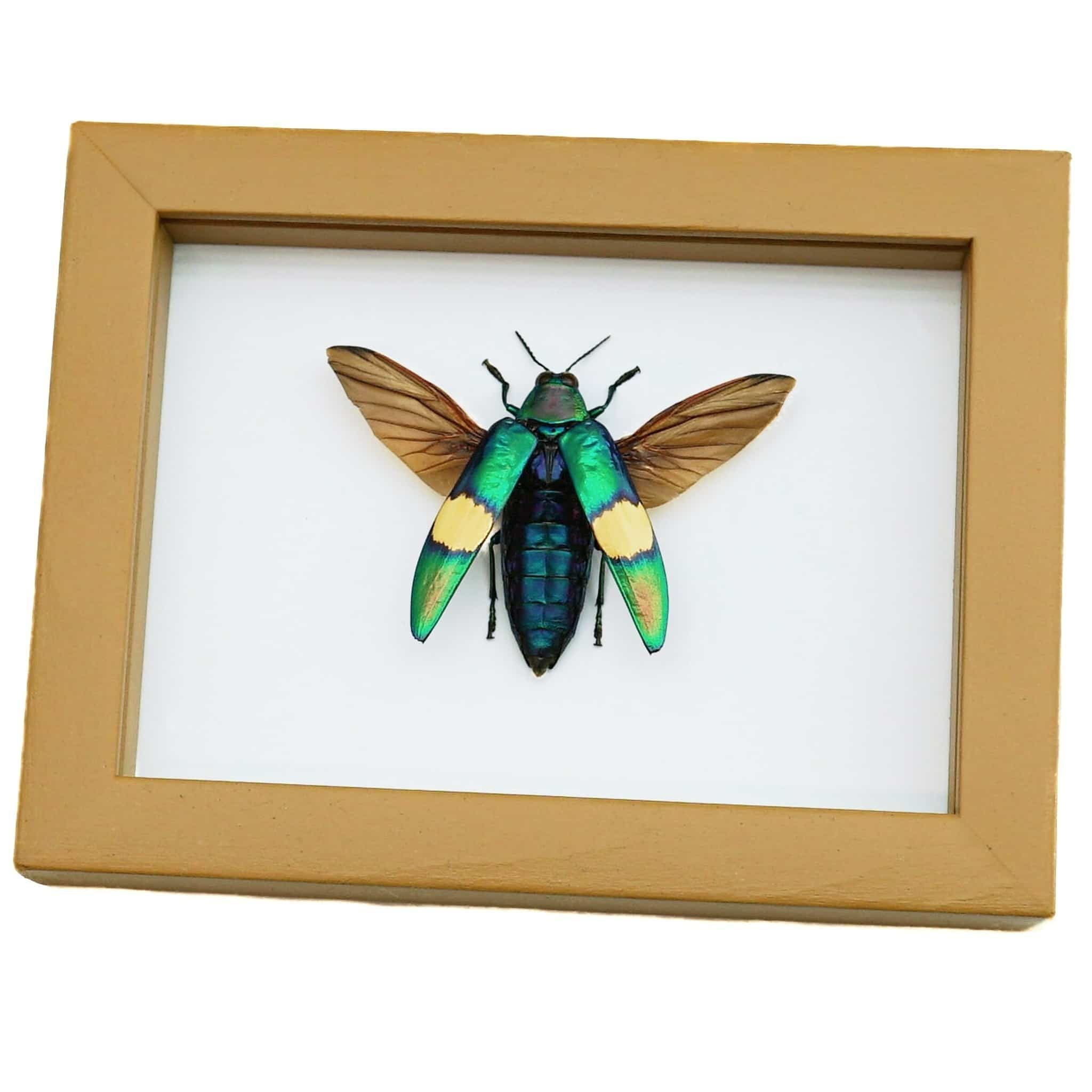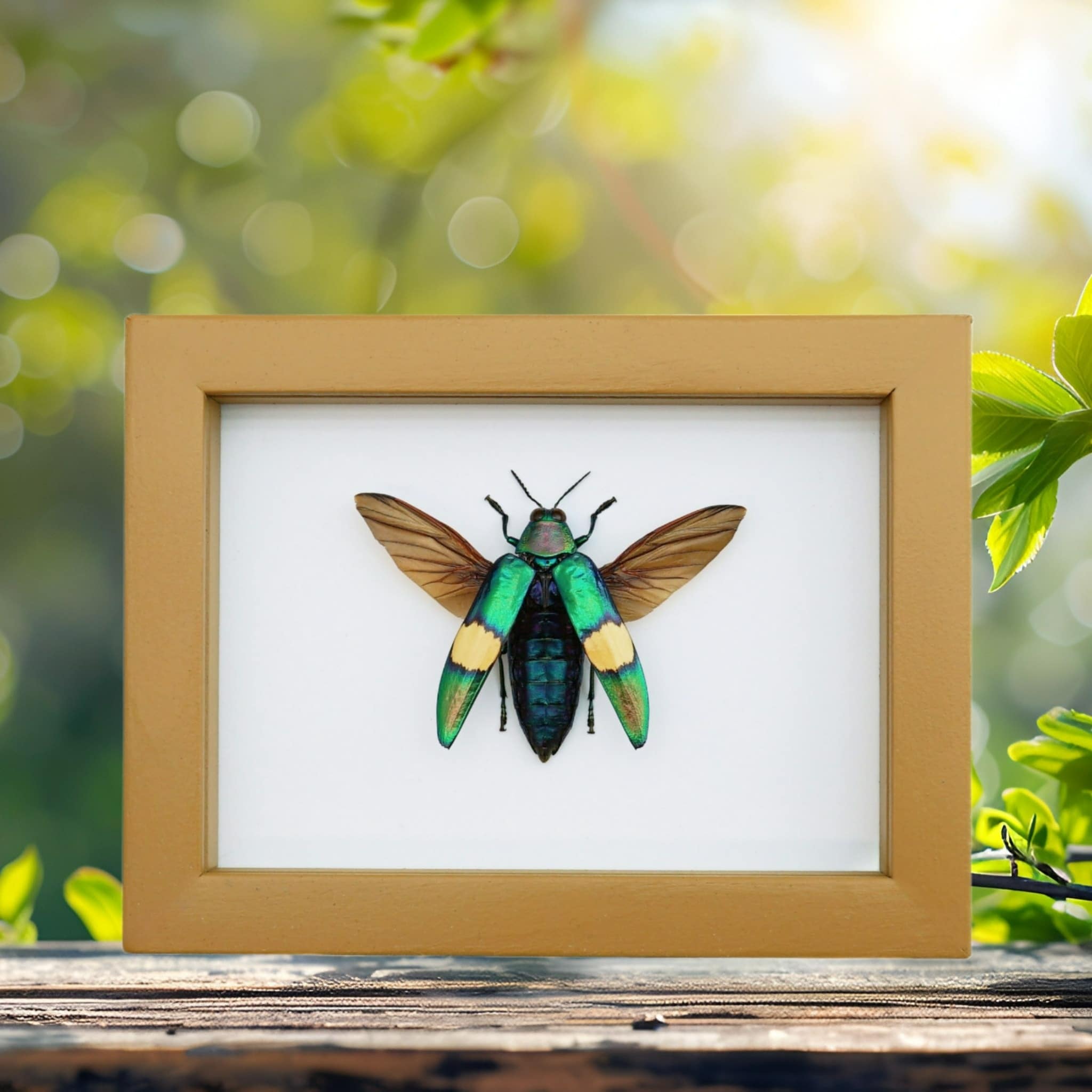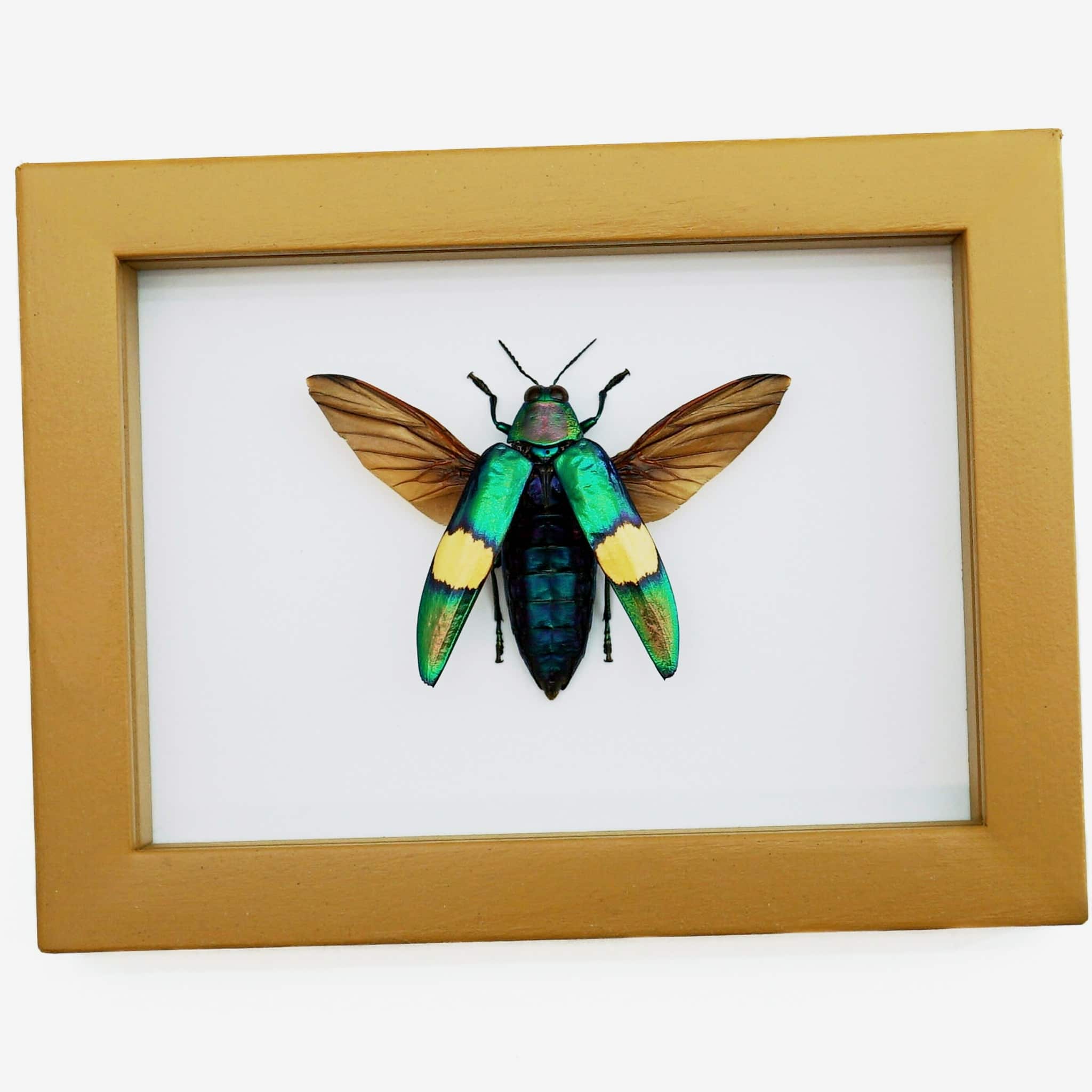 Chrysochroa saundersii Flying Metallic Jewel Beetle Framed Taxidermy Golden Ochre Display