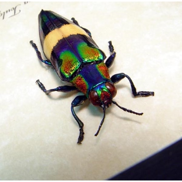 Common Name: Metallic wood boring Jewel Beetle