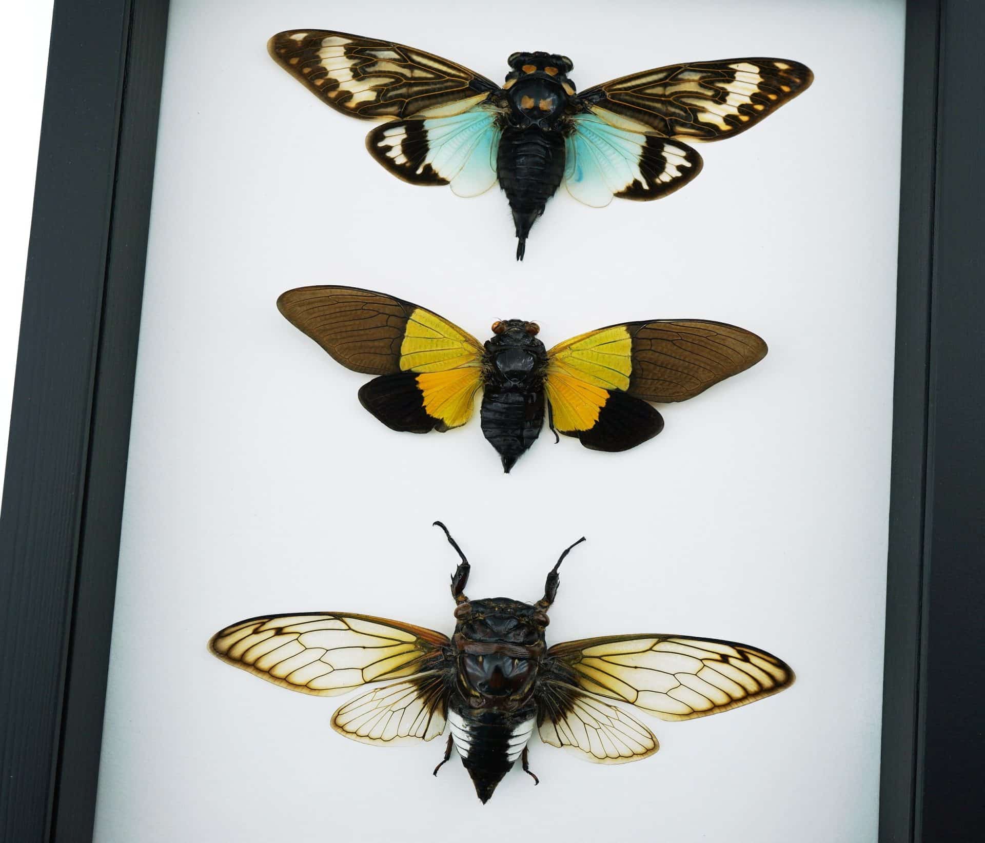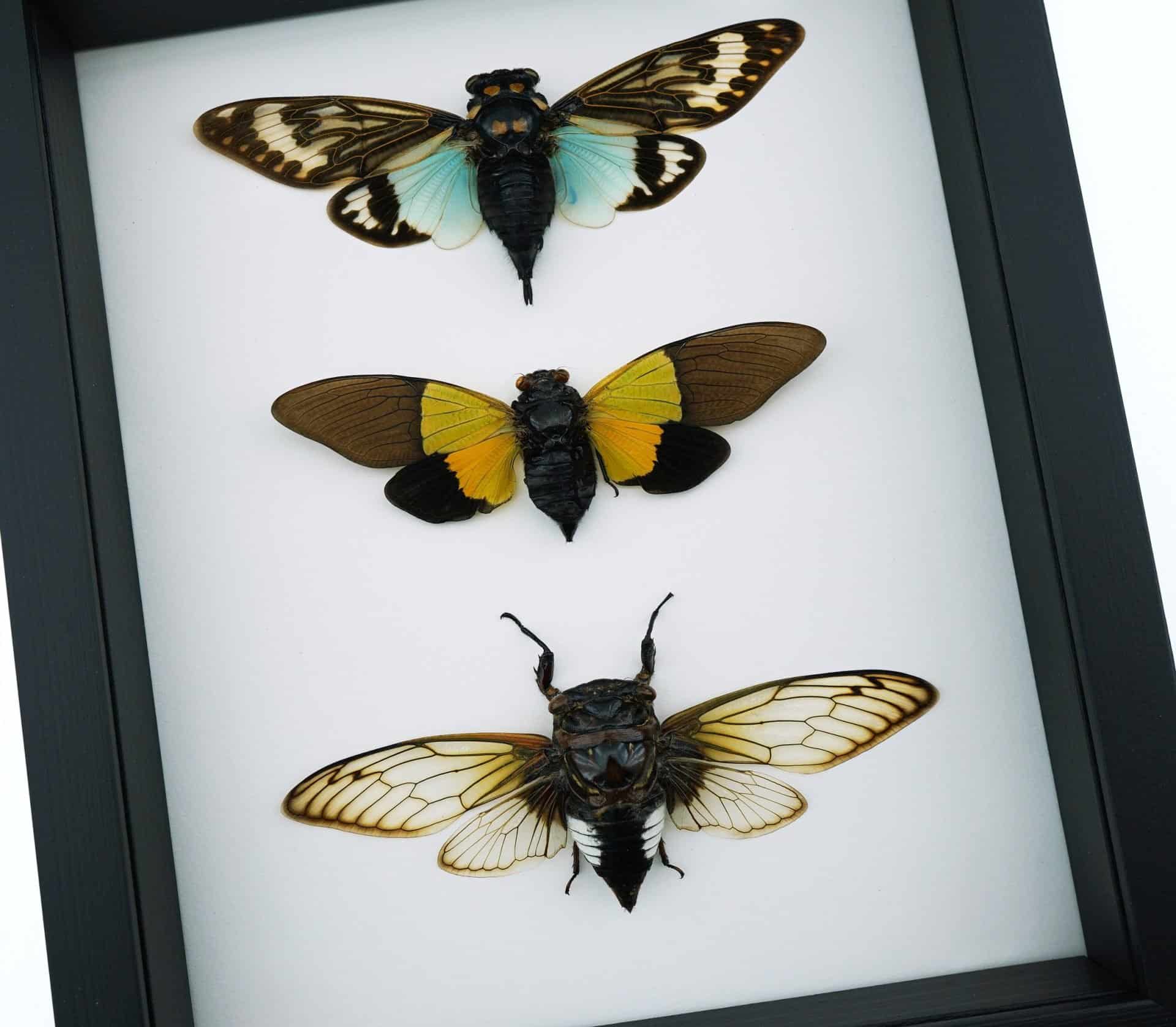 Cicada Collection Blue Green Clear Winged Real Framed Insect Taxidermy Classic Black Display