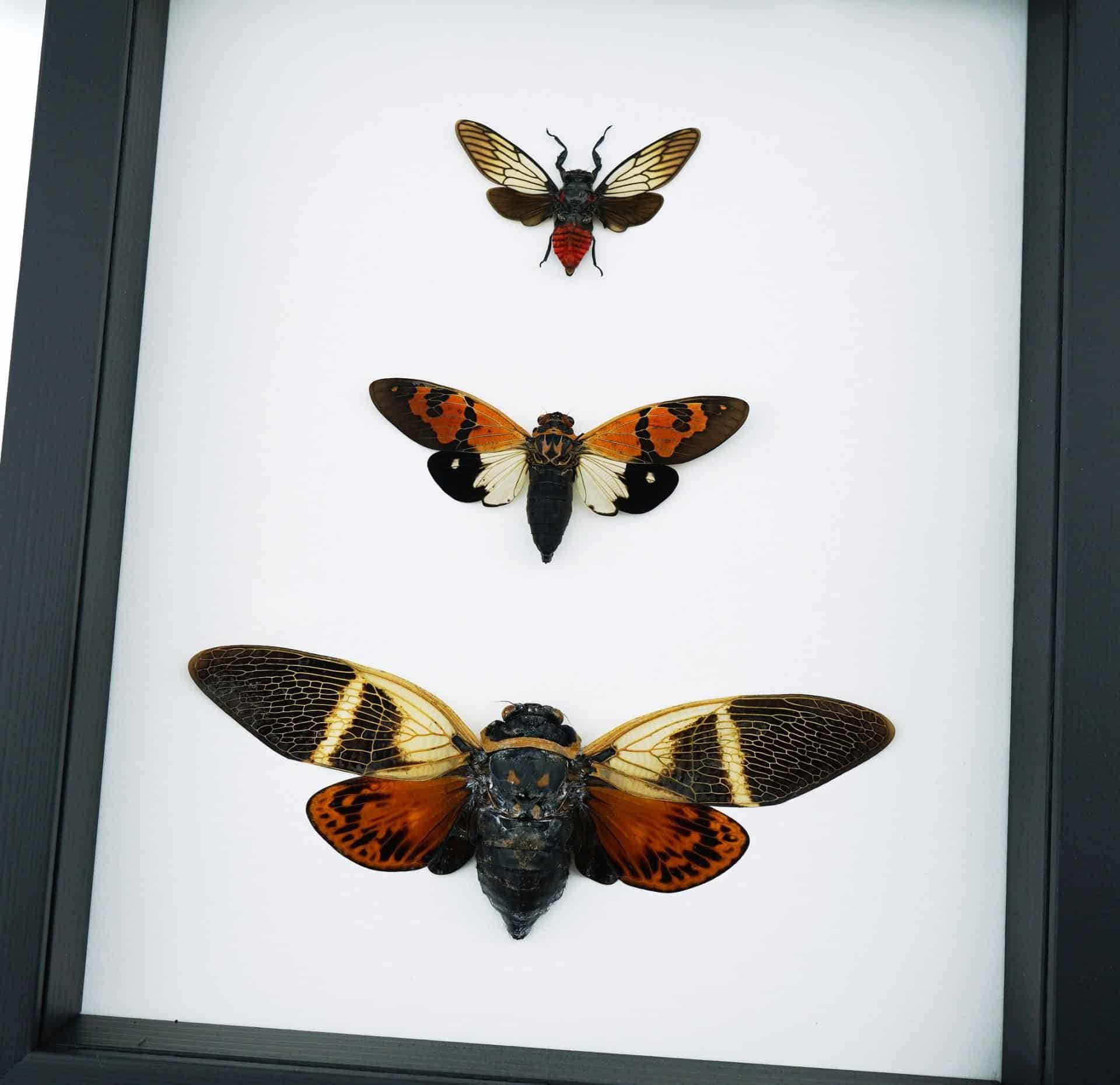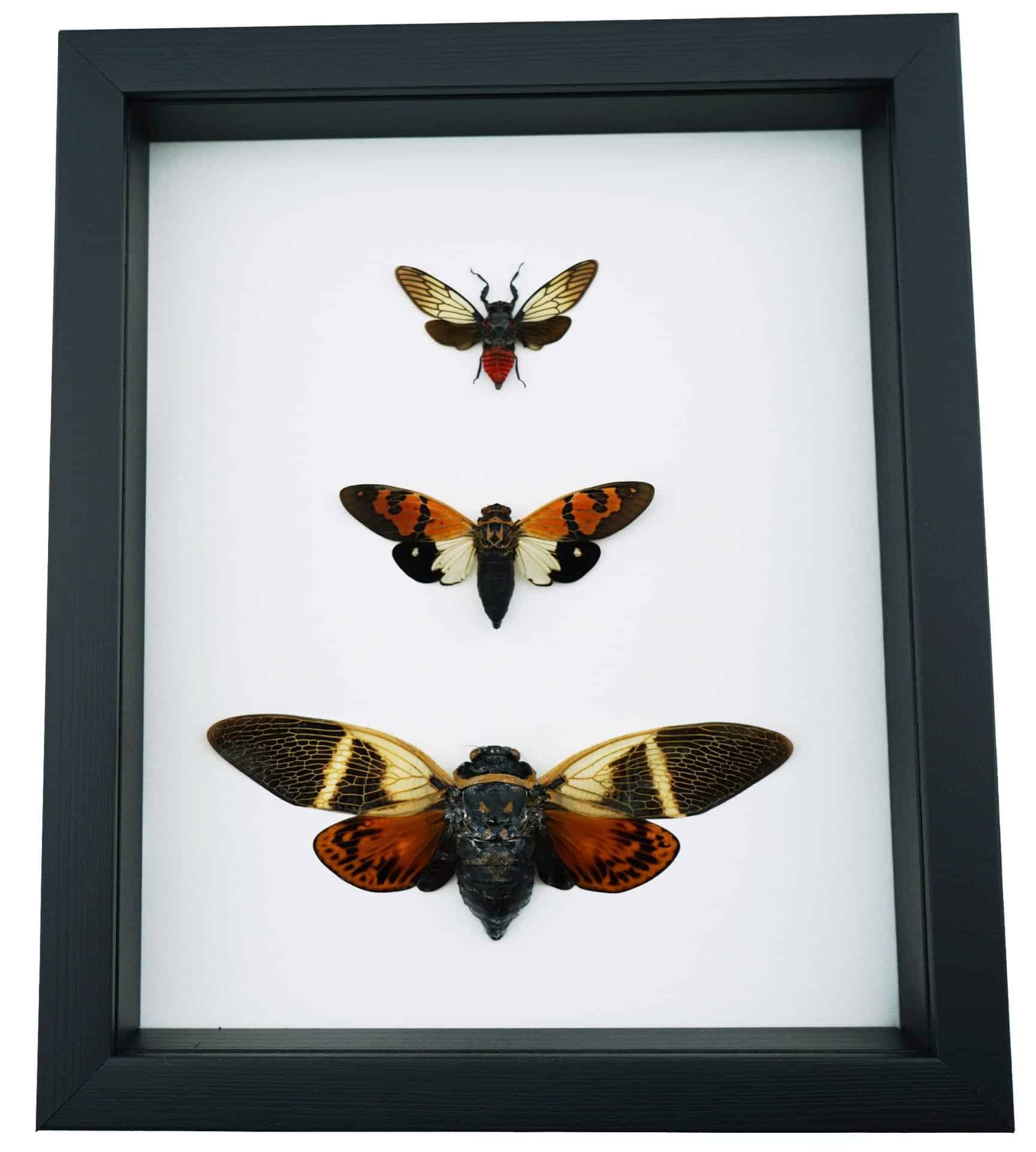 Cicada Trio Collection Framed Insect Taxidermy Classic Black Display