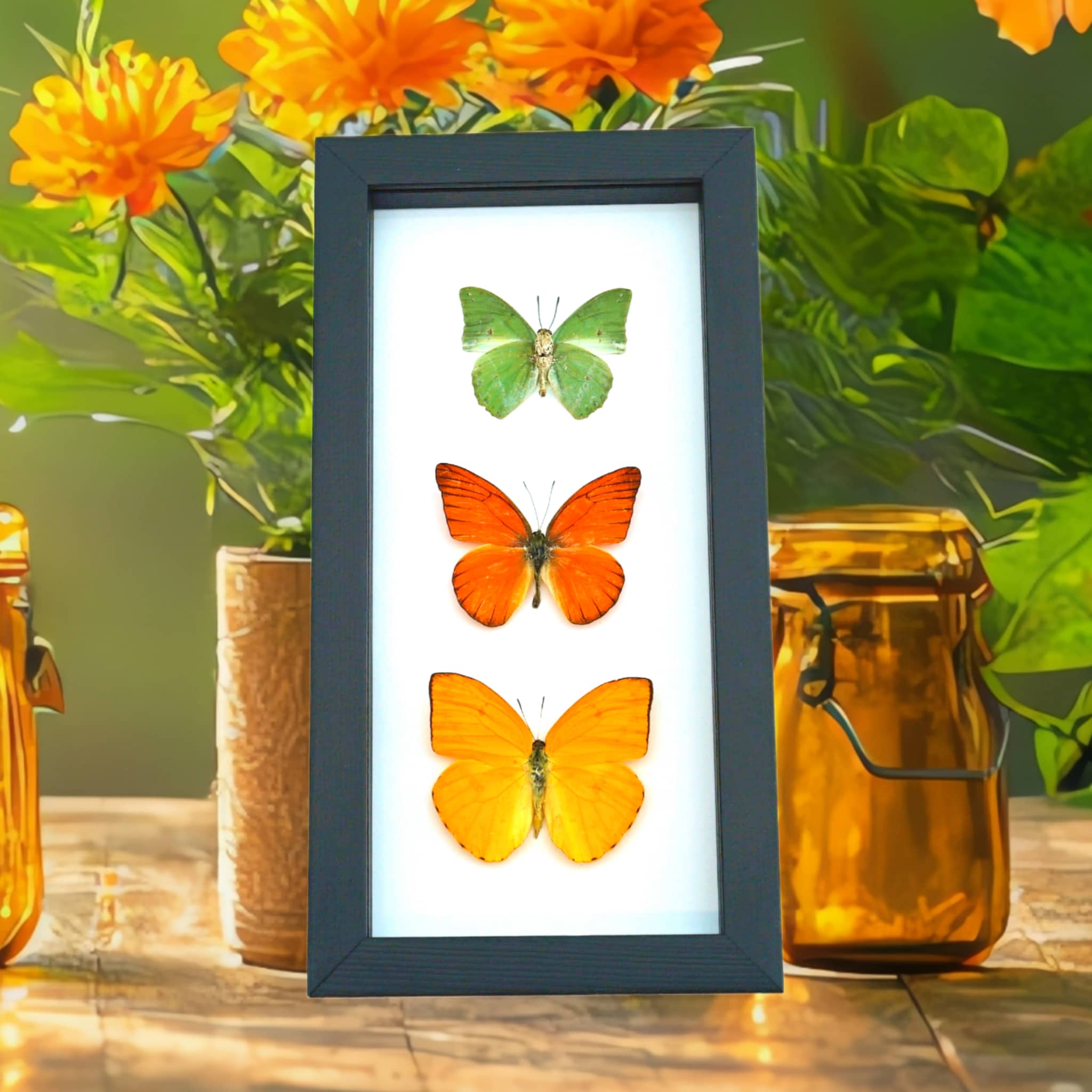 Citrus Collection Lemon Lime Orange Butterflies Framed Butterfly Taxidermy Classic Black Display