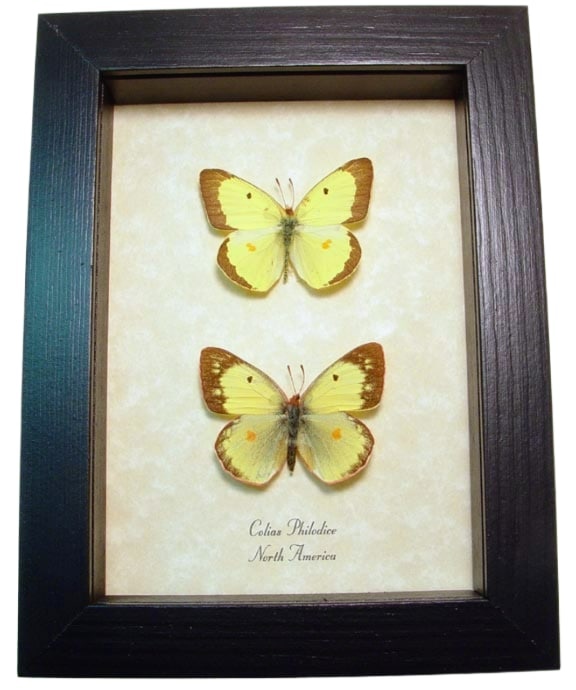 Clouded Sulphur butterflies Colias philodice Butterfly Pair Framed Taxidermy Display