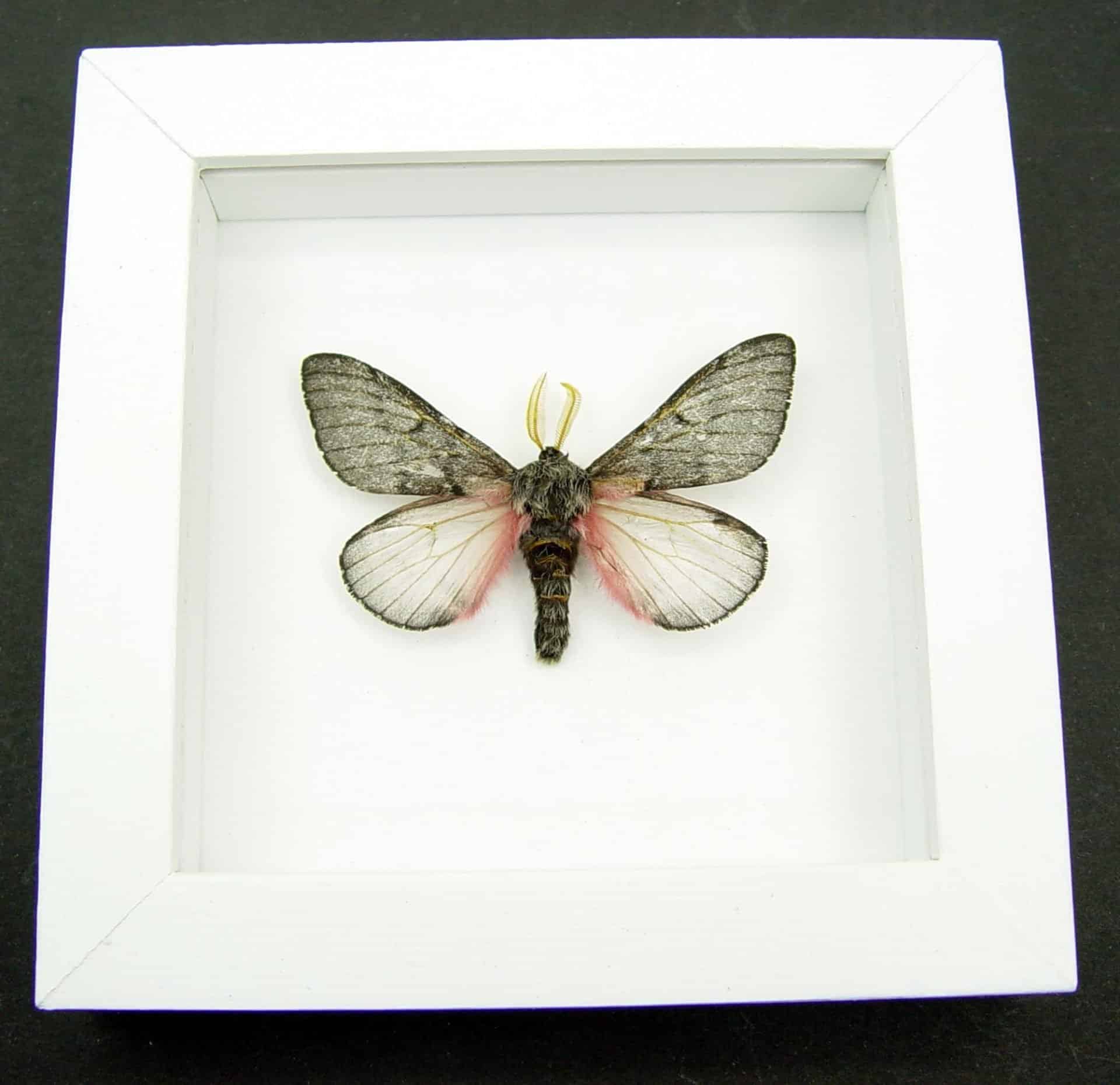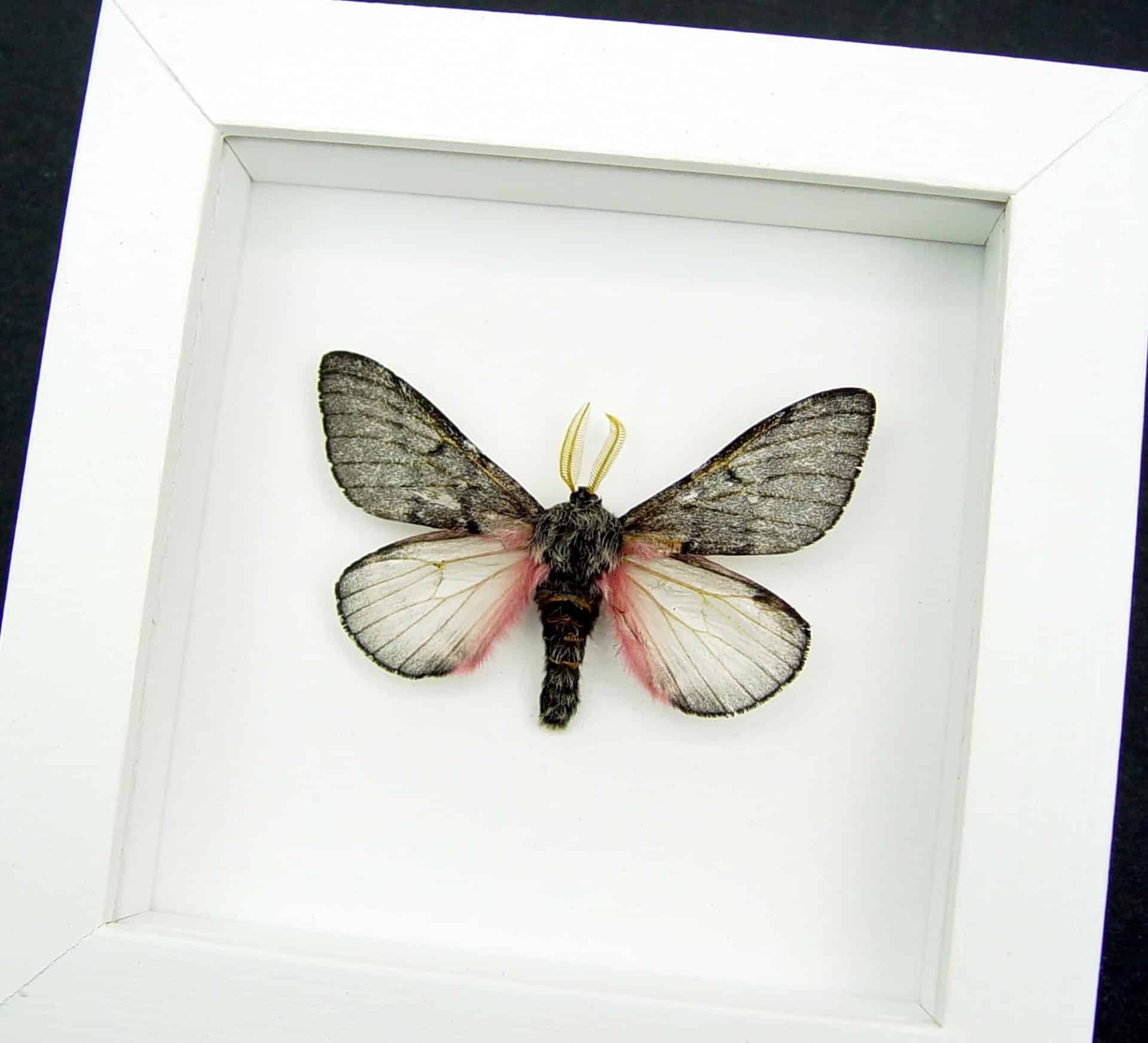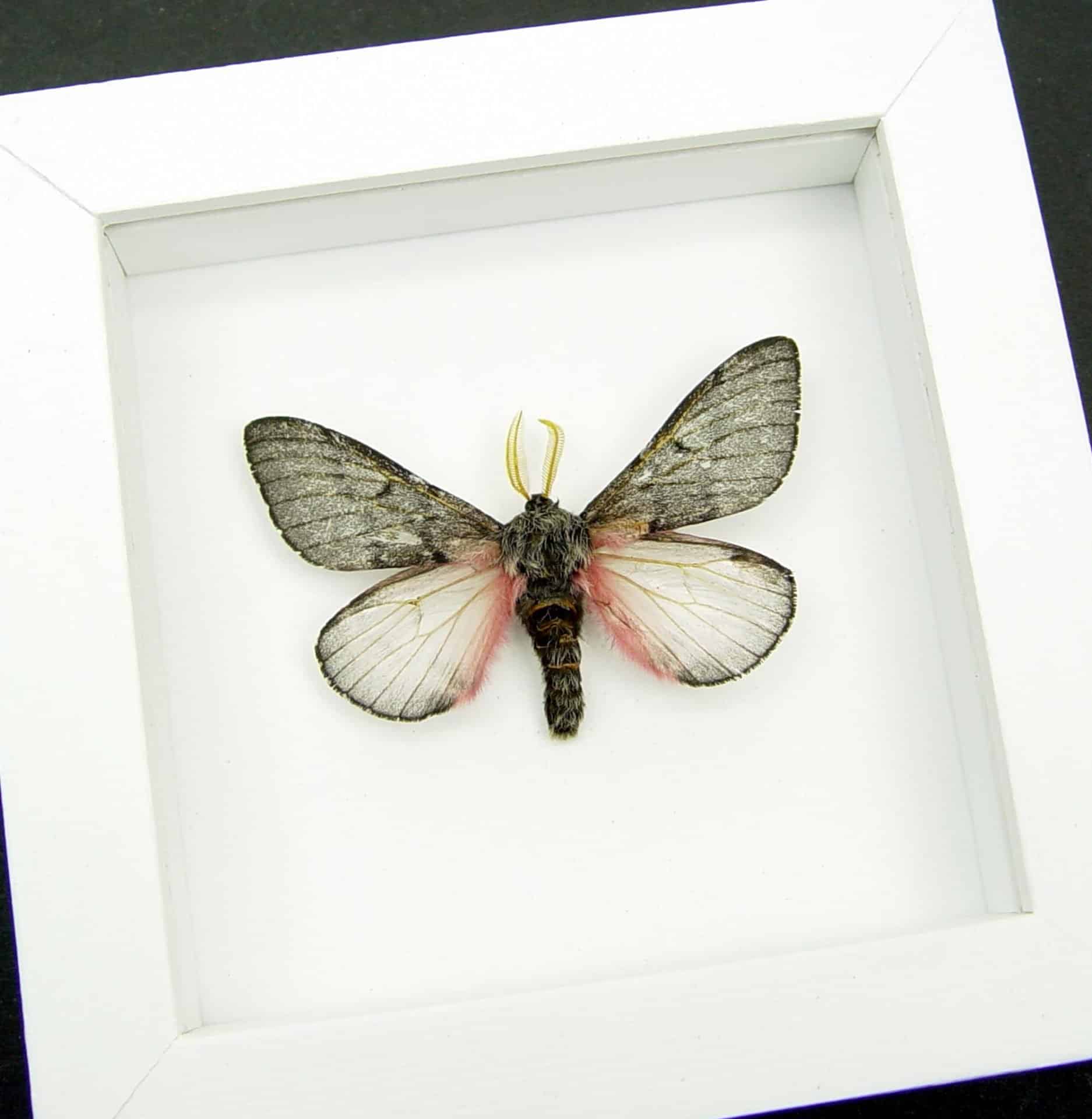 Coloradia doris Pink Furry Doris Pine Moth Real Framed Taxidermy Vibrant White Display