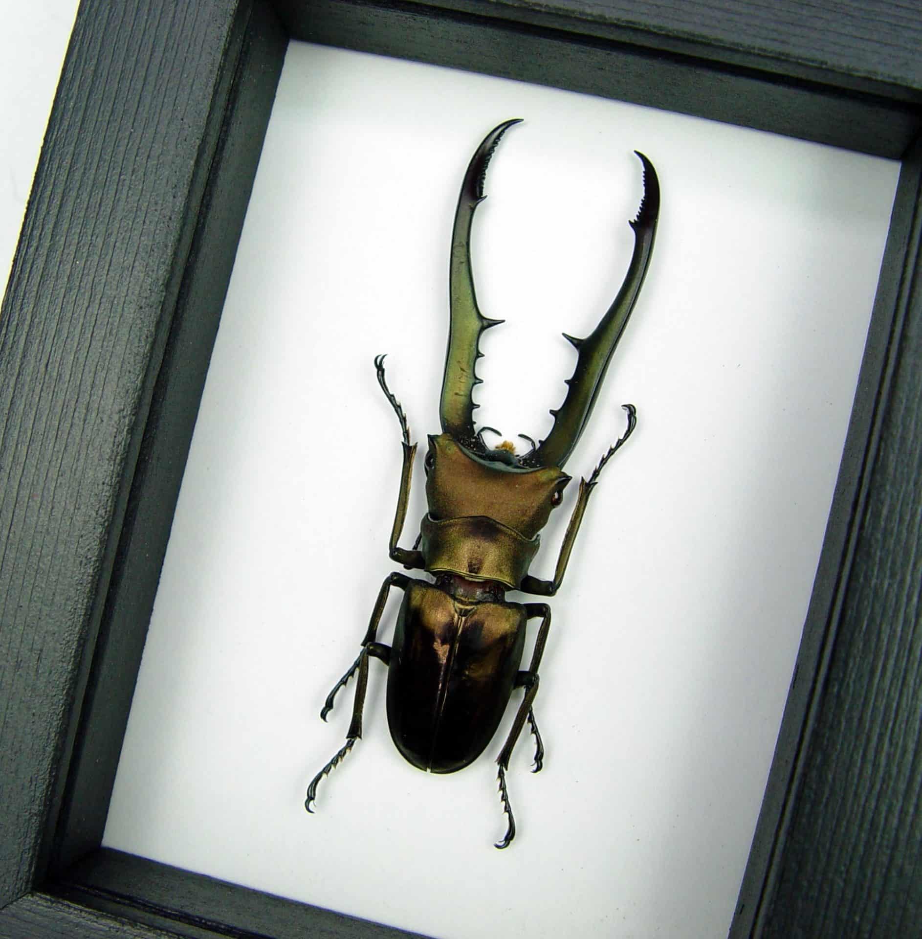 Cyclommatus metallifer Bronze Stag Beetle Framed Taxidermy Classic Black Display
