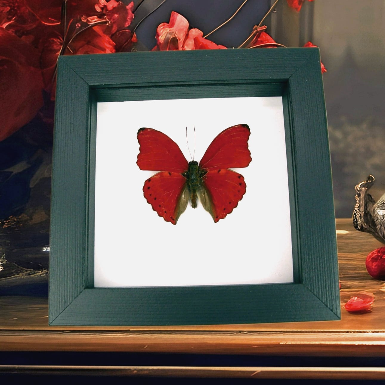 Real Framed Red Glider Butterfly Cymothoe sangaris Taxidermy Classic Black Display