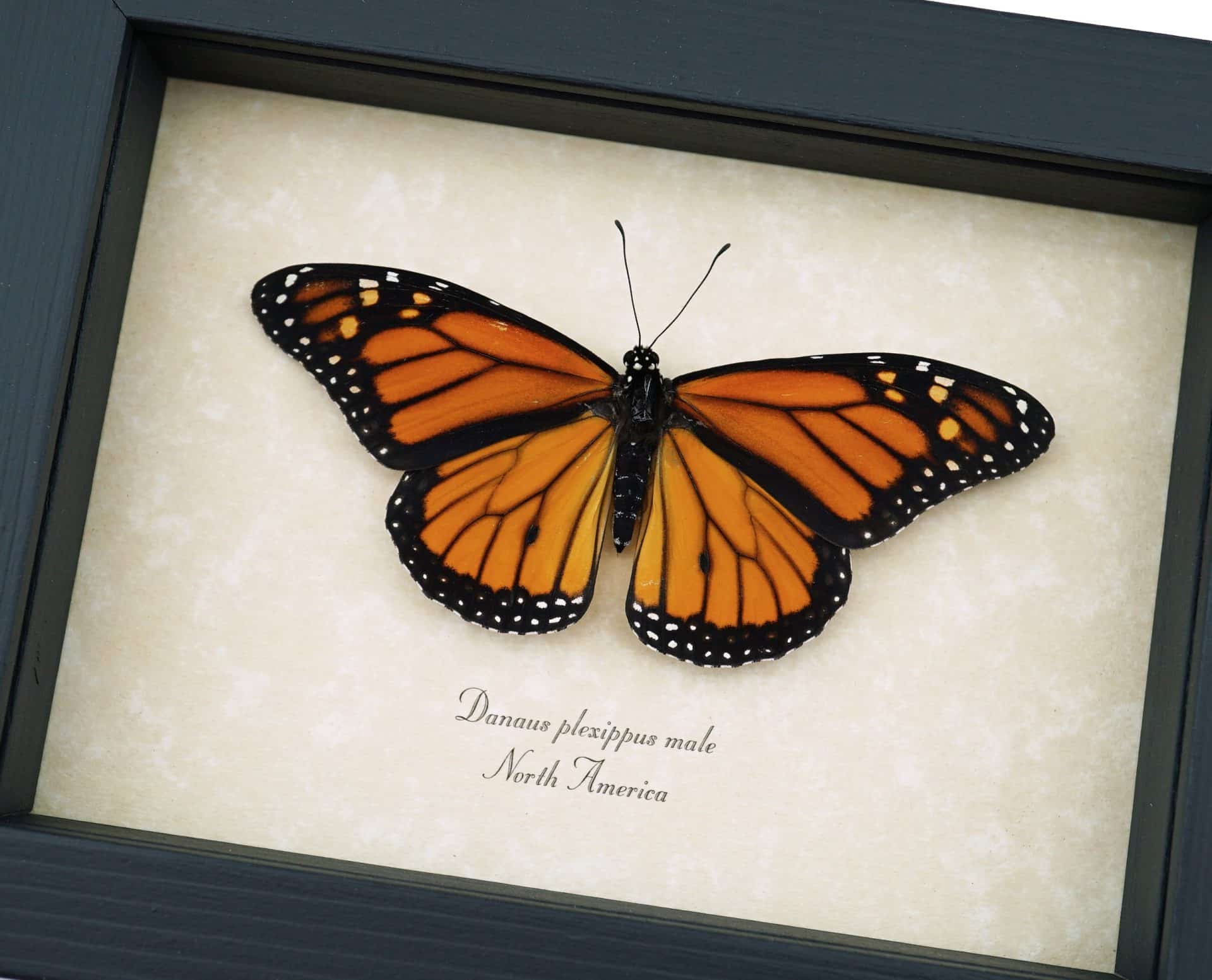 Danaus plexippus male Resting Monarch Butterfly Framed Taxidermy Display