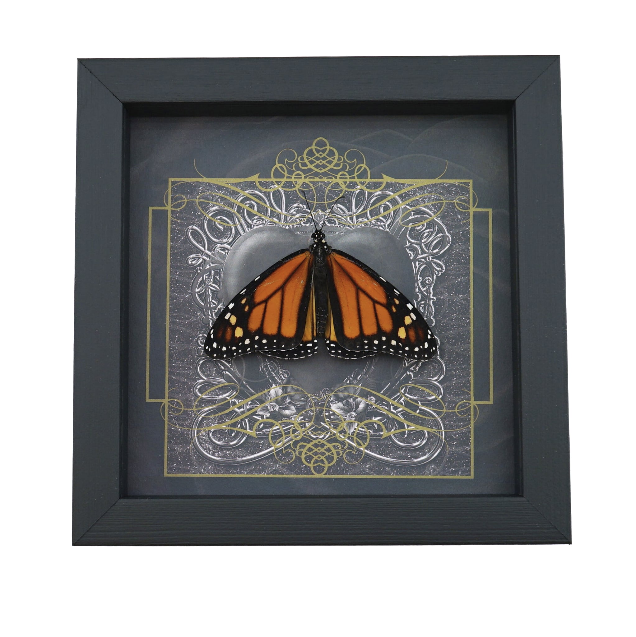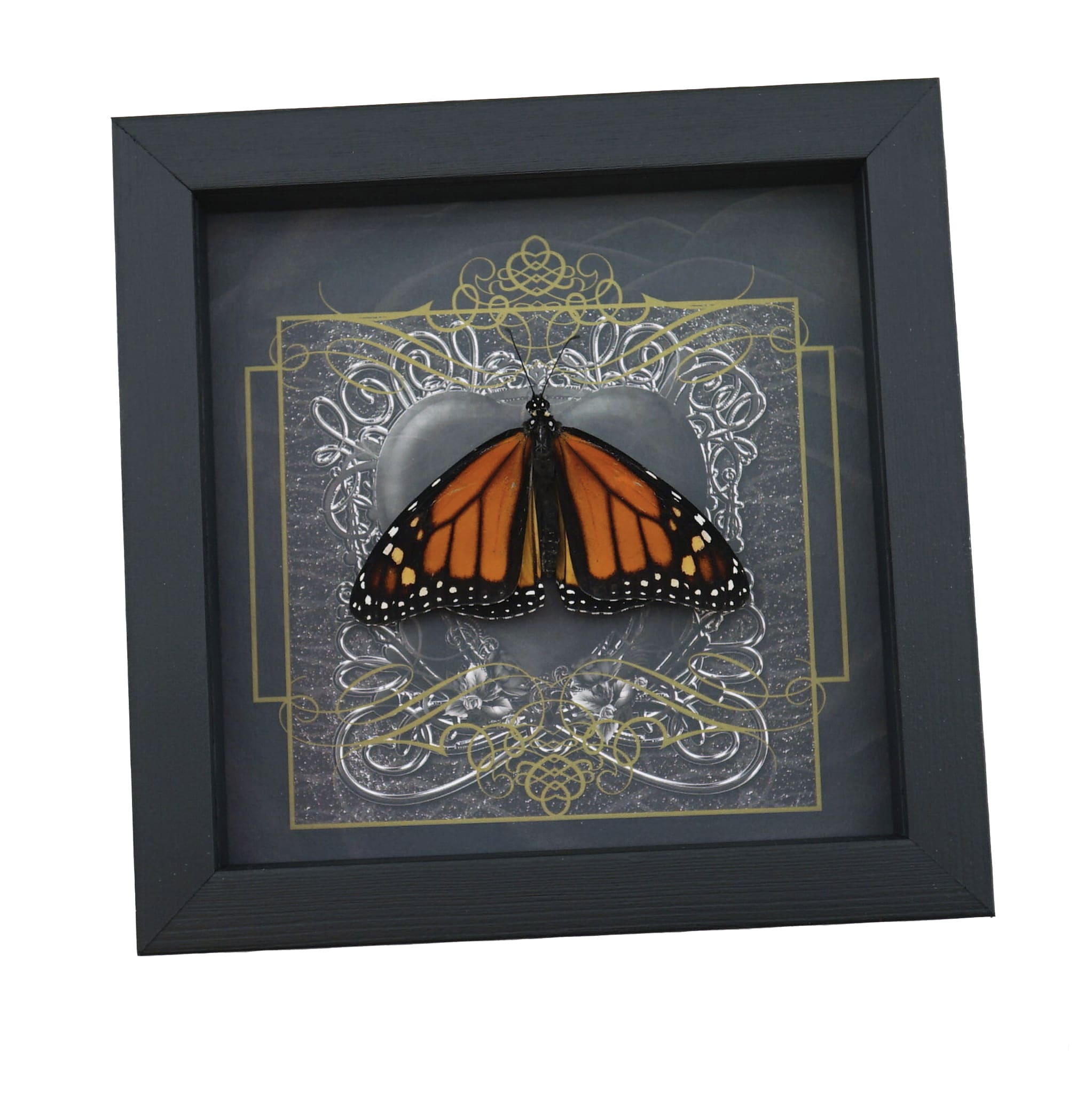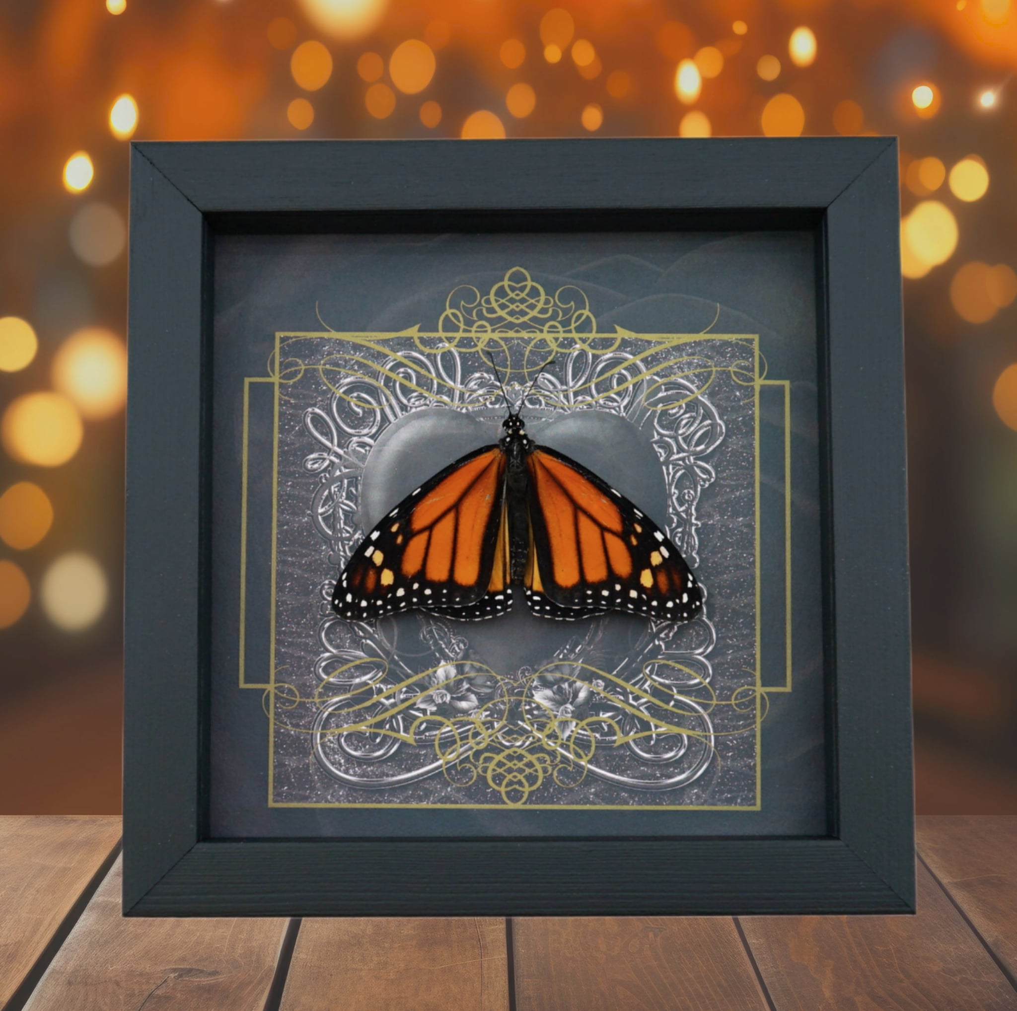 Danaus plexippus male Resting Monarch Butterfly Gothic Black Heart Framed Taxidermy Display