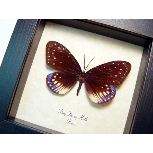 Description: Rare hard to getย Peruvian day flying moth. This moth has cream colored wings with hints ofย metallicย blueย markings.