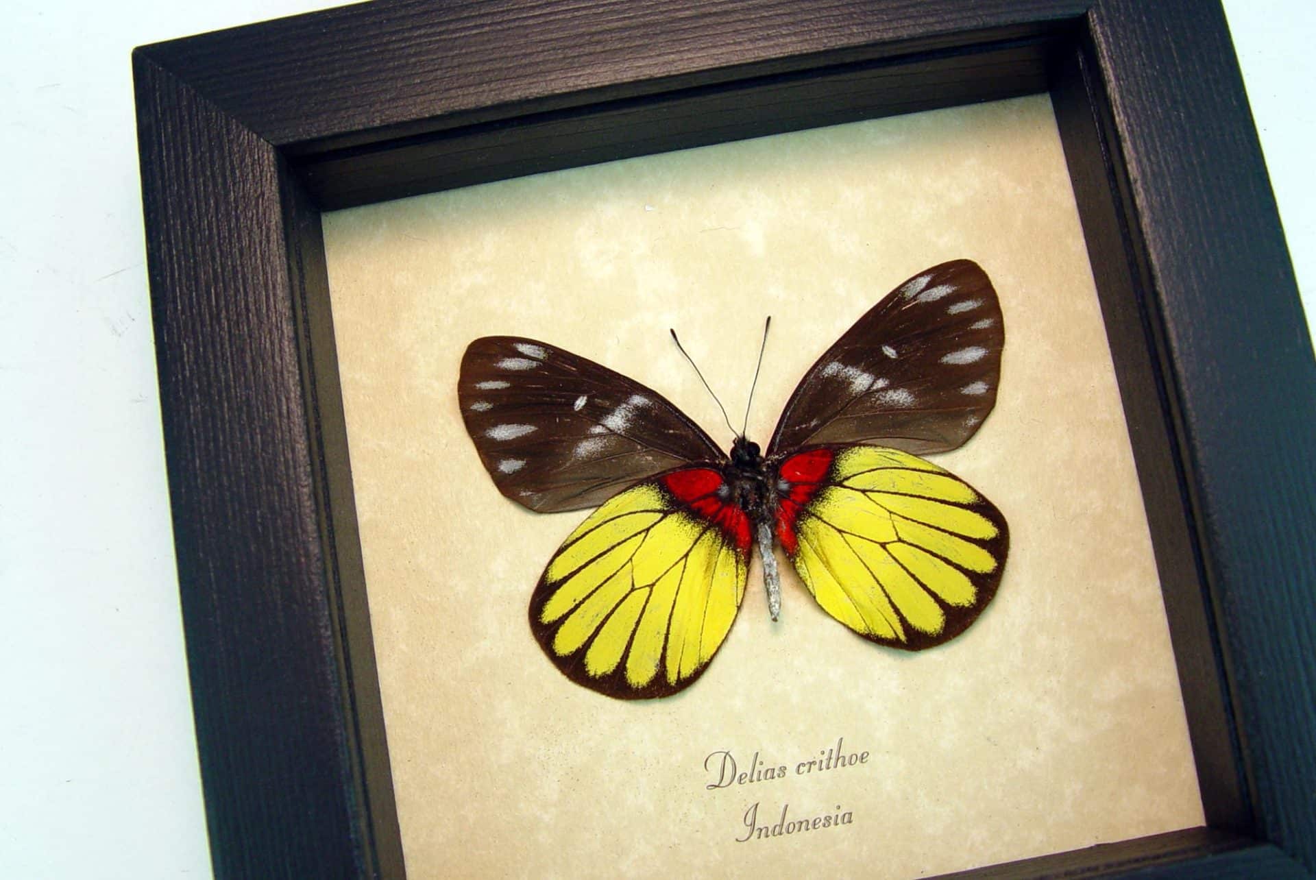 Delias crithoe Framed Butterfly Rare Yellow Red Taxidermy Display