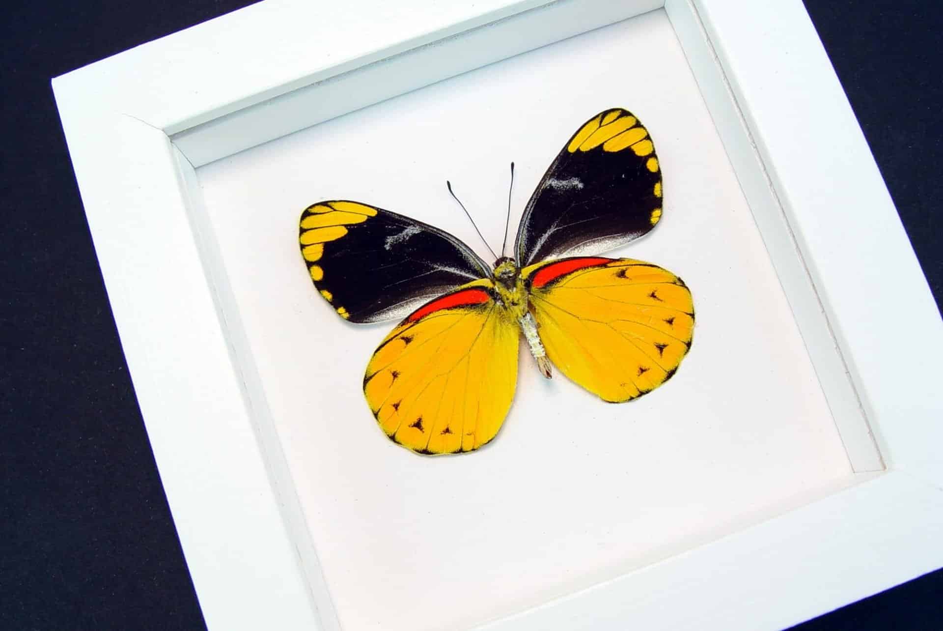 Delias splendida Framed Butterfly Rare Yellow Vibrant White Display