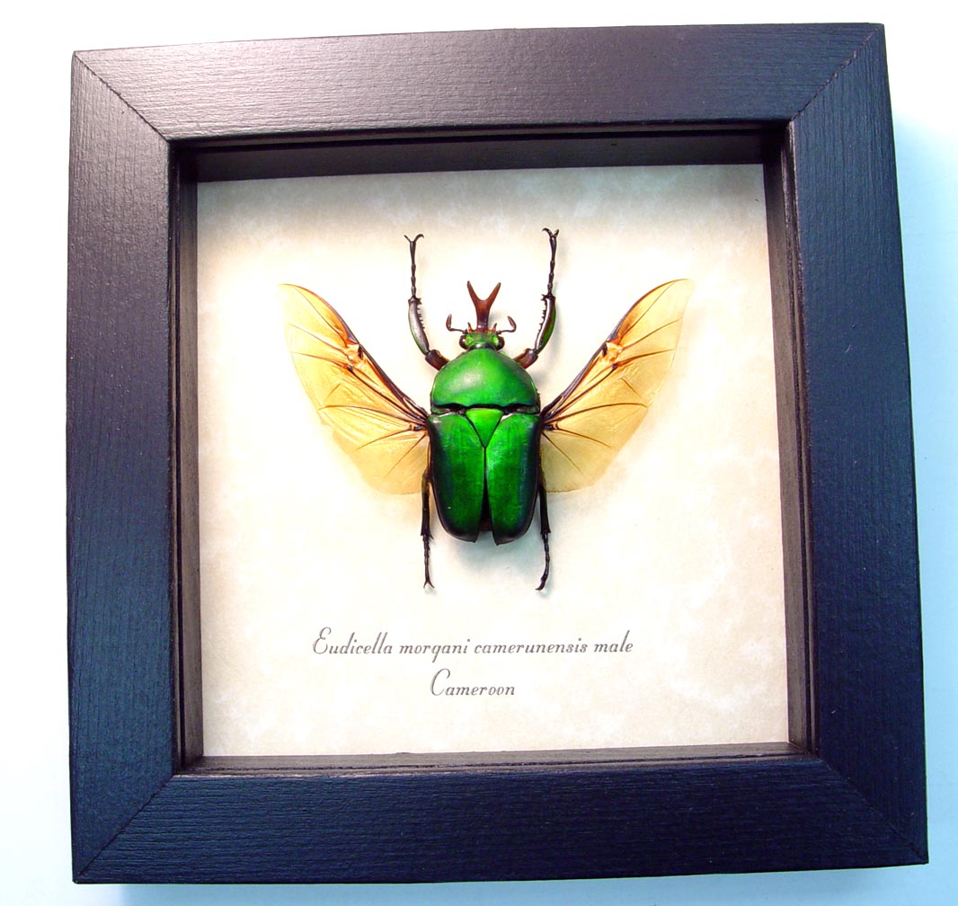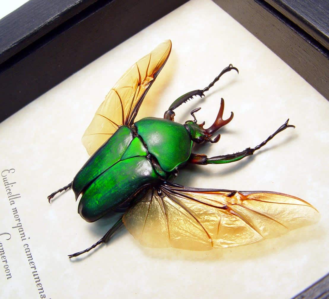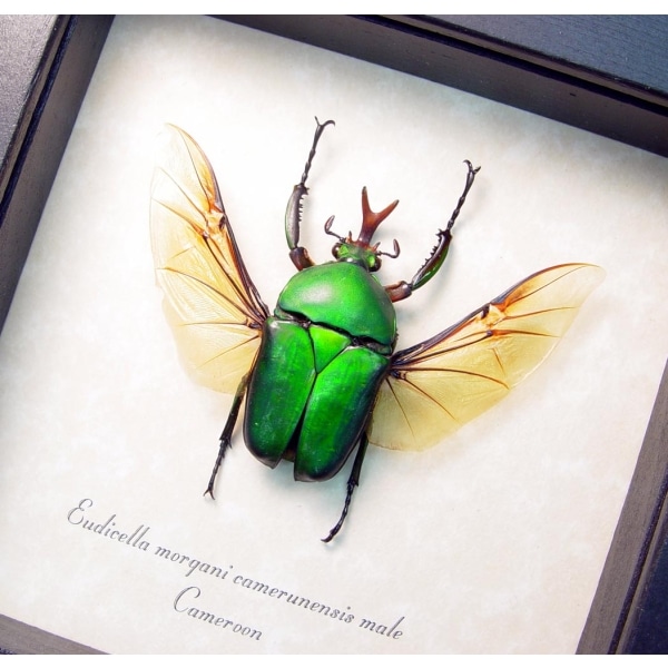 Real Framed Green Flying African Beetle Eudicella morgani Taxidermy Display