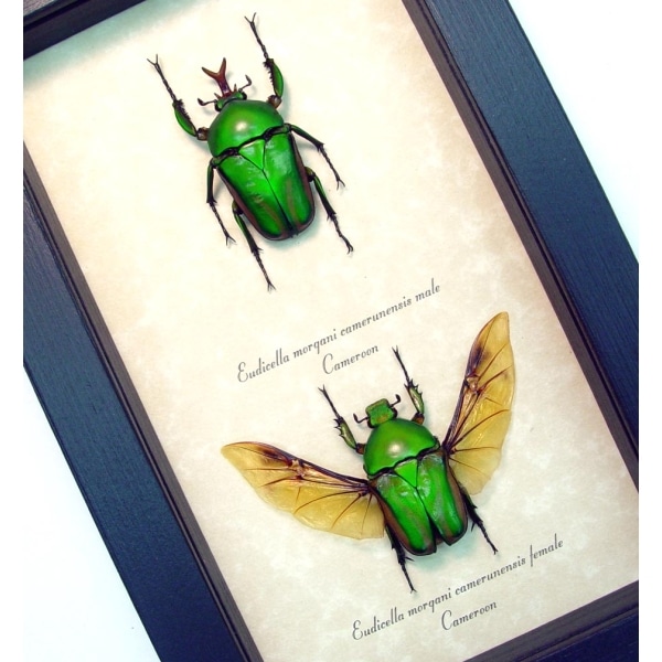 Real Framed Beetle Collection Flying African Beetles Eudicella morgani Pair Taxidermy Display