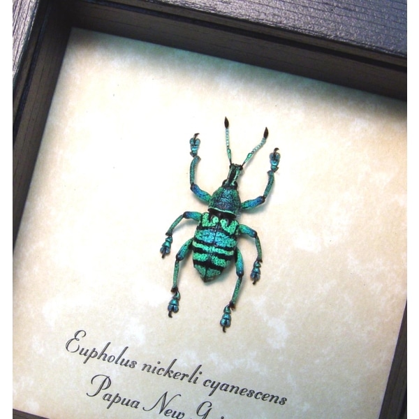 Eupholus nickerli cyanescens Green Weevil Rare Beetle Framed Taxidermy Display
