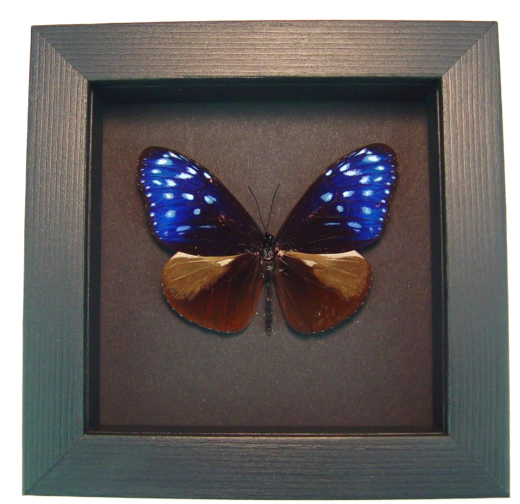 Real Framed Purple Blue Crow Butterfly Euploea mulciber Taxidermy Moonlight Display