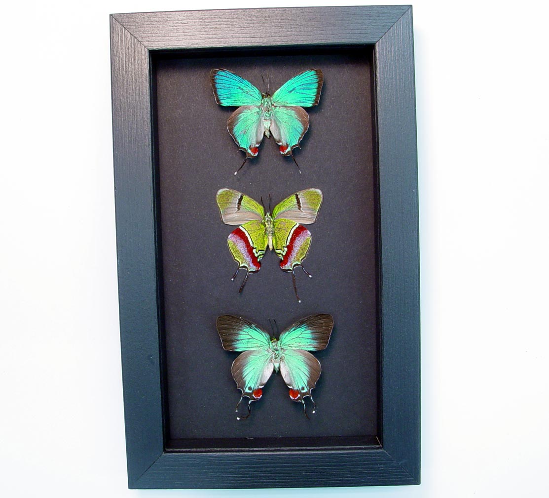 Description: Evenus Regalis butterfly collection. Truly amazing and hard to get set featuring 3 regal hairstreak butterflies.These butterflies are commonly known as the regal Hairstreaks butterflies.