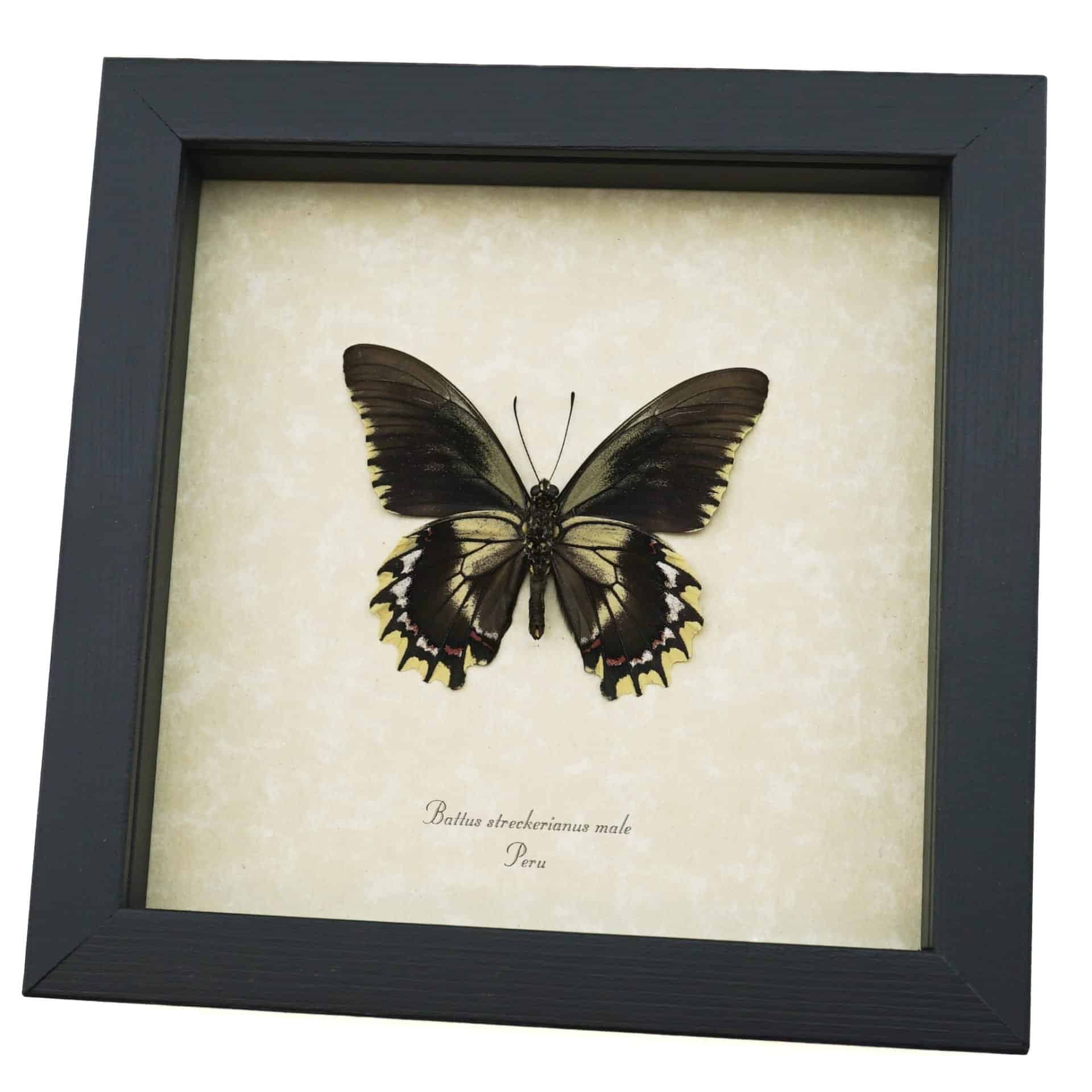 Framed Battus streckerianus Male Verso Rare Gothic Butterfly Taxidermy Display