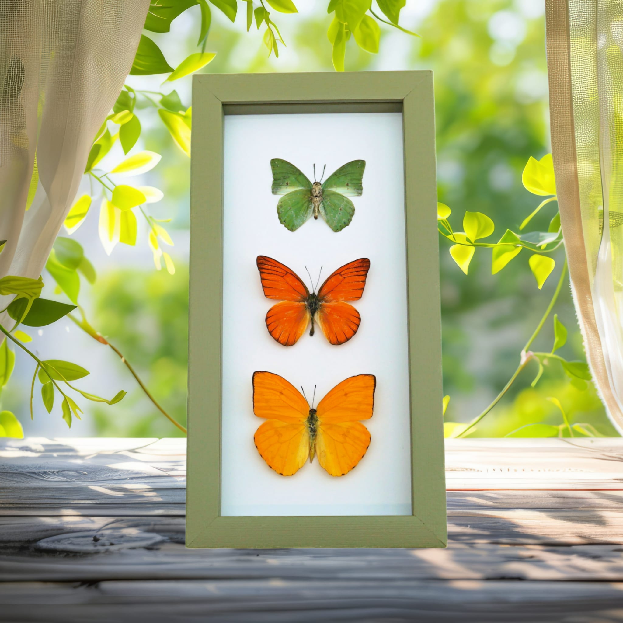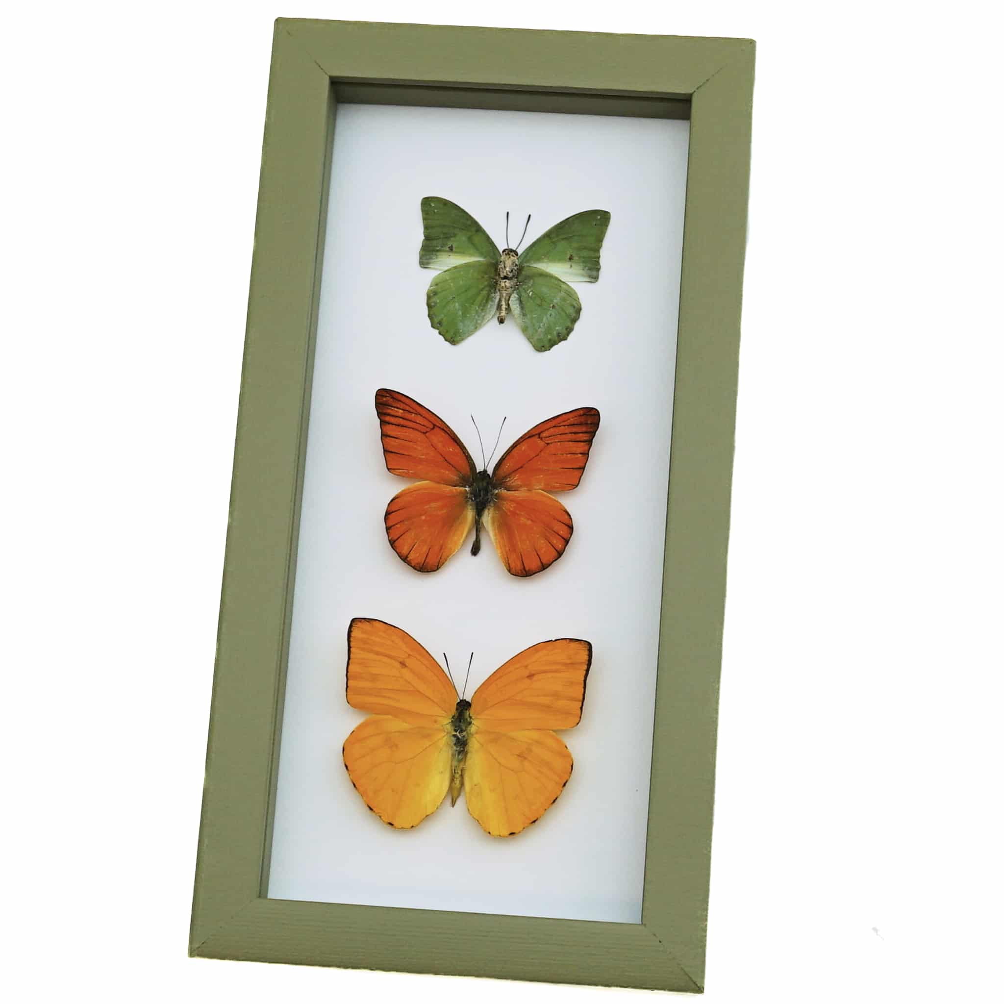 Framed Butterflies Citrus Collection Lemon Lime Orange Butterfly Taxidermy Sage Green Display
